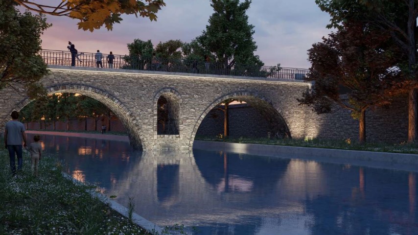 Η νέα πεζογέφυρα θα προσομοιάζει κατά το δυνατόν με την παλαιότερη: δίτοξη με δύο συμμετρικά ημικυκλικά ανοίγματα ελεύθερης υδραυλικής διατομής.