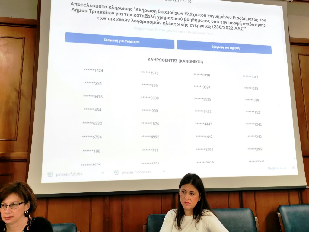 – ο Δήμος Τρικκαίων δημιουργεί ειδικό χώρο στην ιστοσελίδα του, με ειδική εφαρμογή για το πρόγραμμα. Σε αυτή κάθε δυνητικός δικαιούχος θα μπορεί να πληκτρολογεί το ΑΜΚΑ του και να μαθαίνει και με αυτόν τον τρόπο, εάν κληρώθηκε.