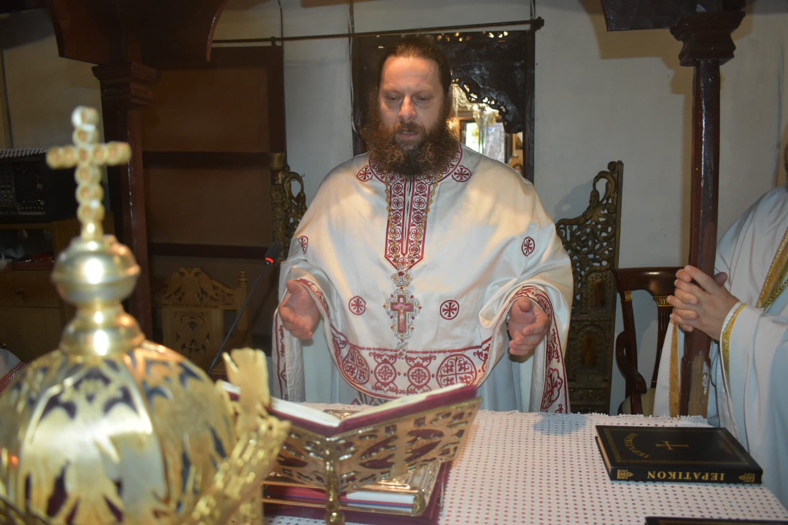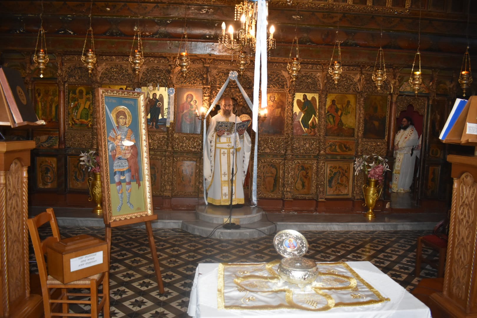 Το λείψανο μετέφεραν εκ της φερώνυμης Ιεράς Μονής ο Καθηγούμενος αυτής Αρχιμανδρίτης Διονύσιος Κλάδης και ο αδελφός αυτής πατέρας Προκόπιος. Ακολούθησε πανηγυρικός Εσπερινός και το πρωί της Δευτέρας, κυριώνυμο ημέρα της εορτής, Θεία Λειτουργία στο εκκλησάκι του χωριού, προεξάρχοντος του γέρονττος Διονυσίου. Δείτε φωτογραφίες: