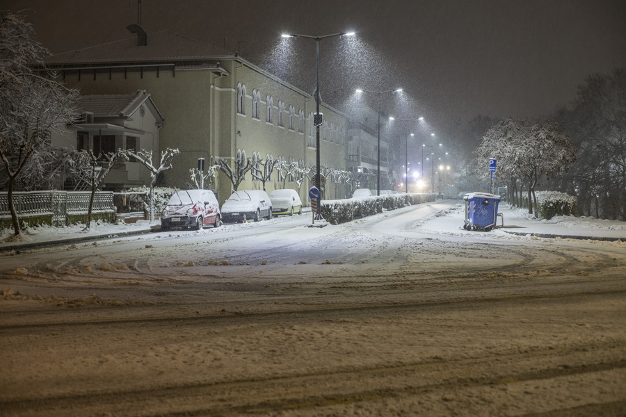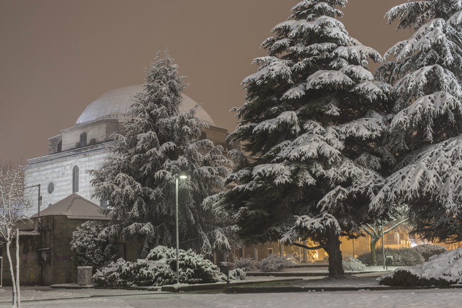 Συνεχίζεται η έντονη χιονόπτωση που ξεκίνησε χθες νωρίς το απόγευμα και στην πόλη των Τρικάλων.