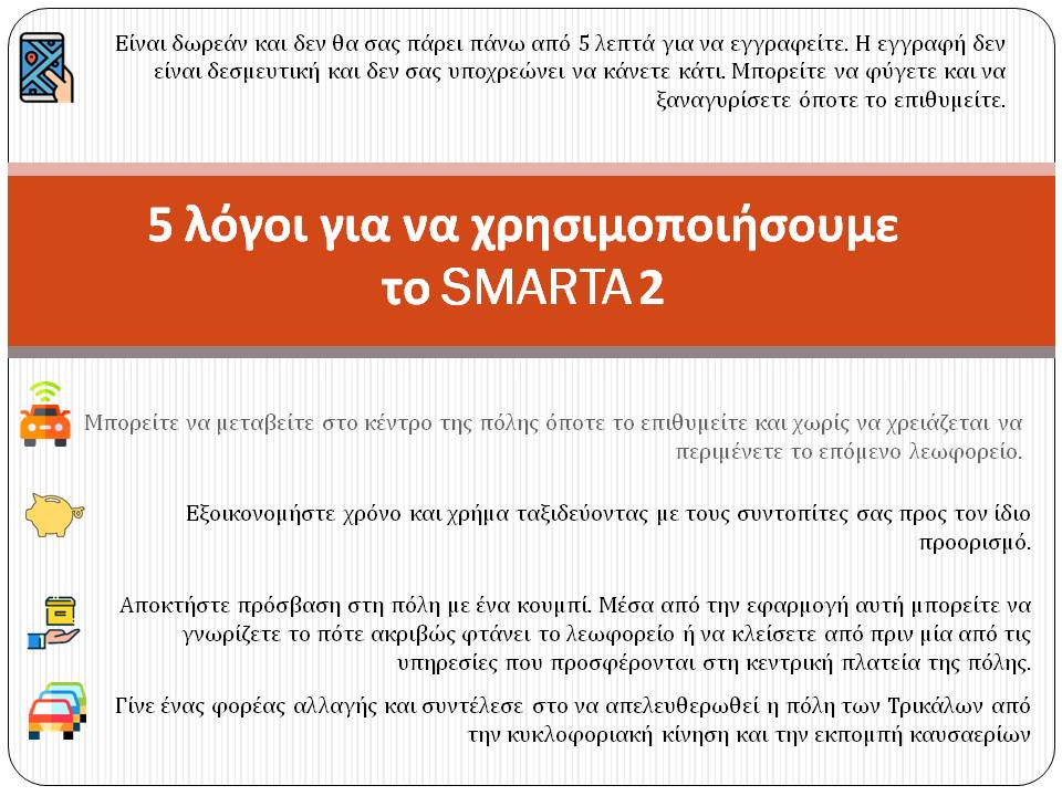 Η on line αυτή υπηρεσία είναι στη διάθεση των πολιτών να την κατεβάσουν δωρεάν από το Google Play πληκτρολογώντας smarta2.
