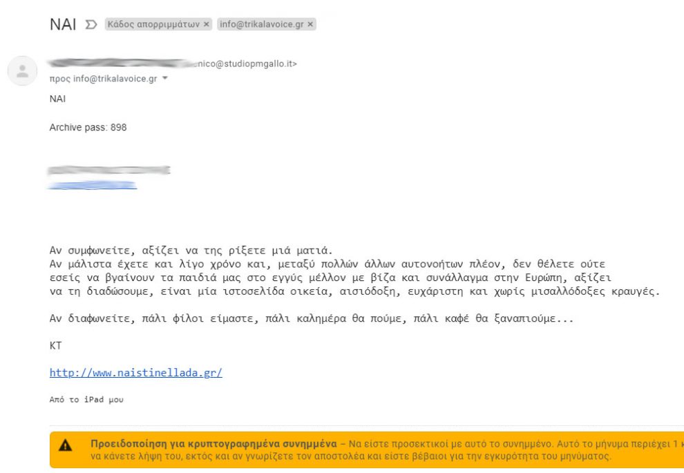 Spam μηνύματα μέσα από e-mail γνωστών Τρικαλινών στέλνονται από το πρωί της Τετάρτης, από ύποπτες διευθύνσεις.