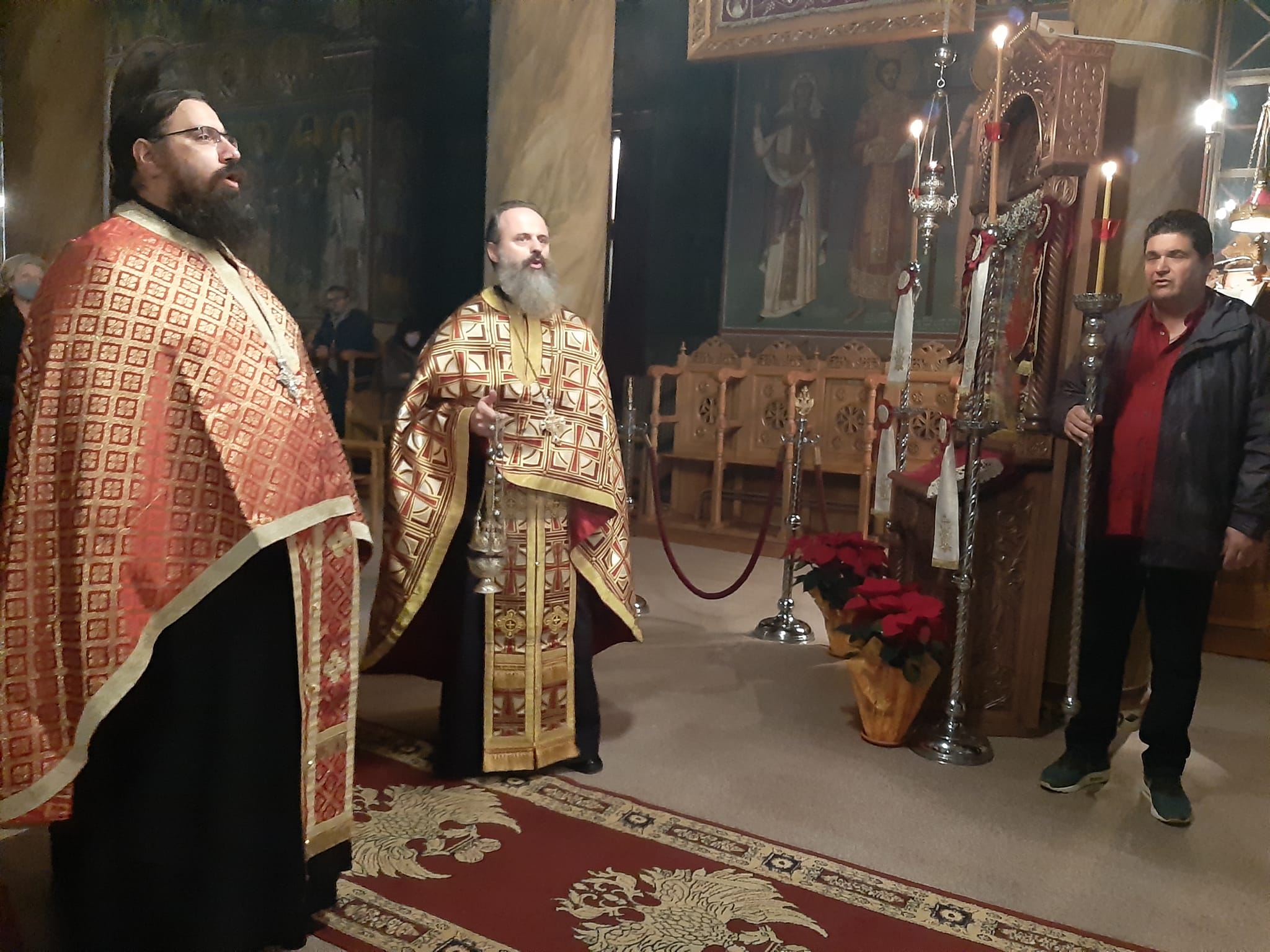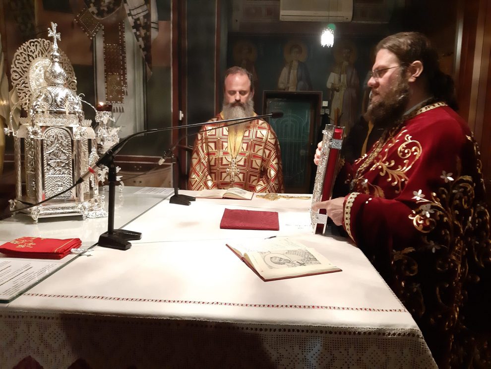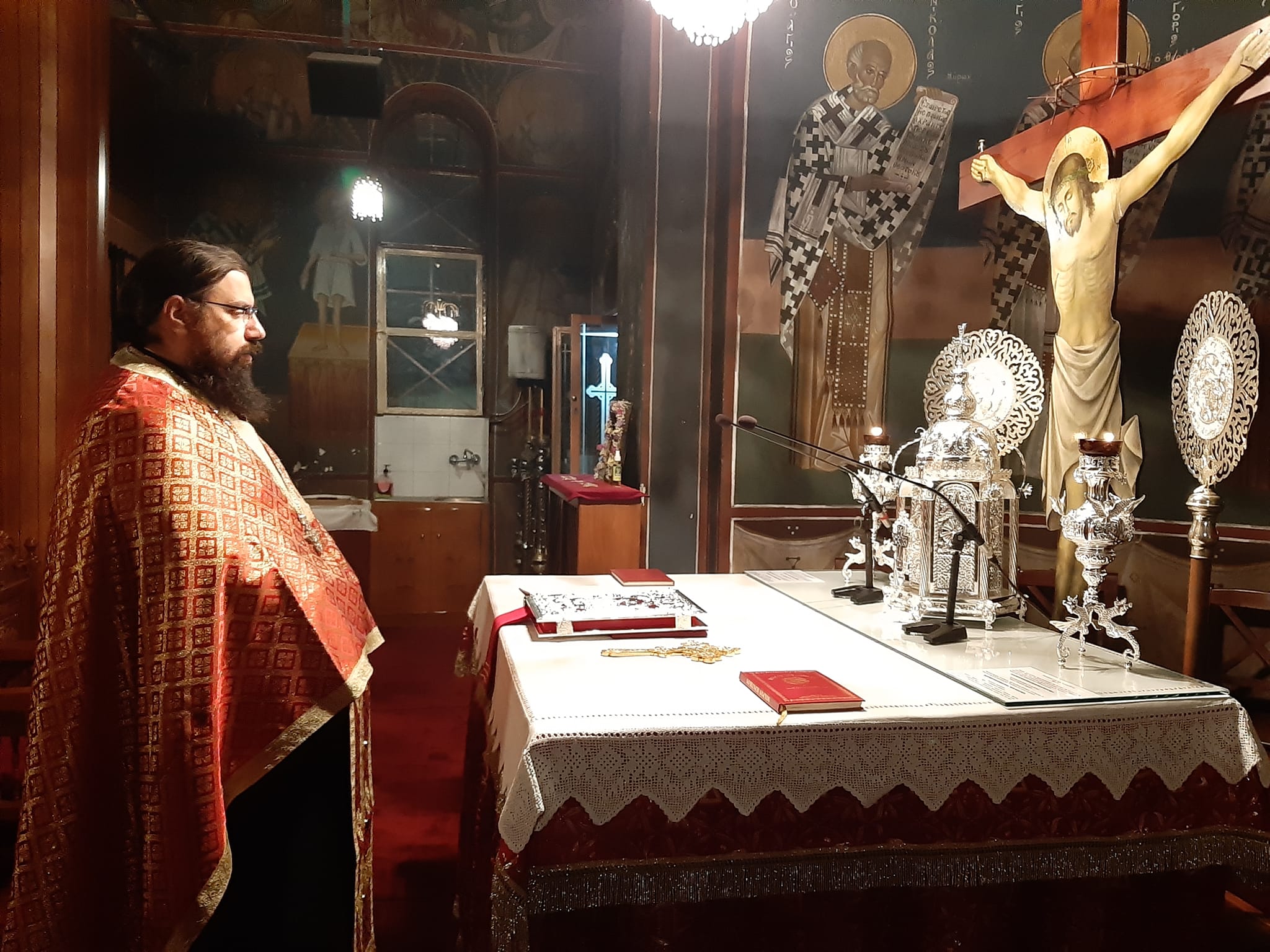 Κατά την Αγρυπνία ιερούργησε ο Ηγούμενος της Μονής Αγίου Προκοπίου, γέροντας Διονύσιος και συλλειτούργησαν ο εφημέριος του Ναού π. Σπυρίδωνας Σπύρου και ο π. Ιωάννης Κουβελάς.