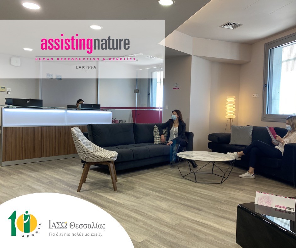 Το ΙΑΣΩ Θεσσαλίας, η μεγαλύτερη Ιδιωτική Κλινική της Θεσσαλίας και της Κεντρικής Ελλάδας, πρωτοστατεί και στον τομέα της Υποβοηθούμενης Αναπαραγωγής. Ένωσε τις δυνάμεις του με την Assisting Nature και δημιούργησε μία νέα υπερσύγχρονη Μονάδα Υποβοηθούμενης Αναπαραγωγής, την Assisting Nature Larissa. Η επιστημονική ομάδα της Assisting Nature μεταφέρει την επταετή της τεχνογνωσία στη Θεσσαλία, ώστε τα ζευγάρια να μην χρειάζεται πλέον να μετακινούνται σε Θεσσαλονίκη και Αθήνα για να βρουν ιατρικές υπηρεσίες υψηλού επιπέδου.