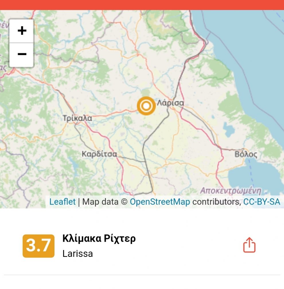 Ο πρώτος σημειώθηκε στις 20.00 ακριβώς 16 χιλιόμετρα Δυτικά της Λάρισας, προς το σημείο που παρατηρείται έντονη σεισμική δραστηριότητα τις τελευταίες μέρες και ο δεύτερος 3,7 Ρίχτερ στις 20.07.
