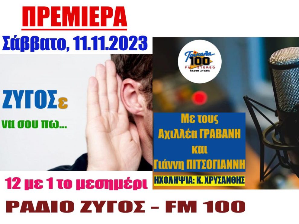 Θα τους ακούμε από αύριο και κάθε Σάββατο 12 μ. -1 μ.μ. στον “Ζυγό FM 100”. Αξίζουν…