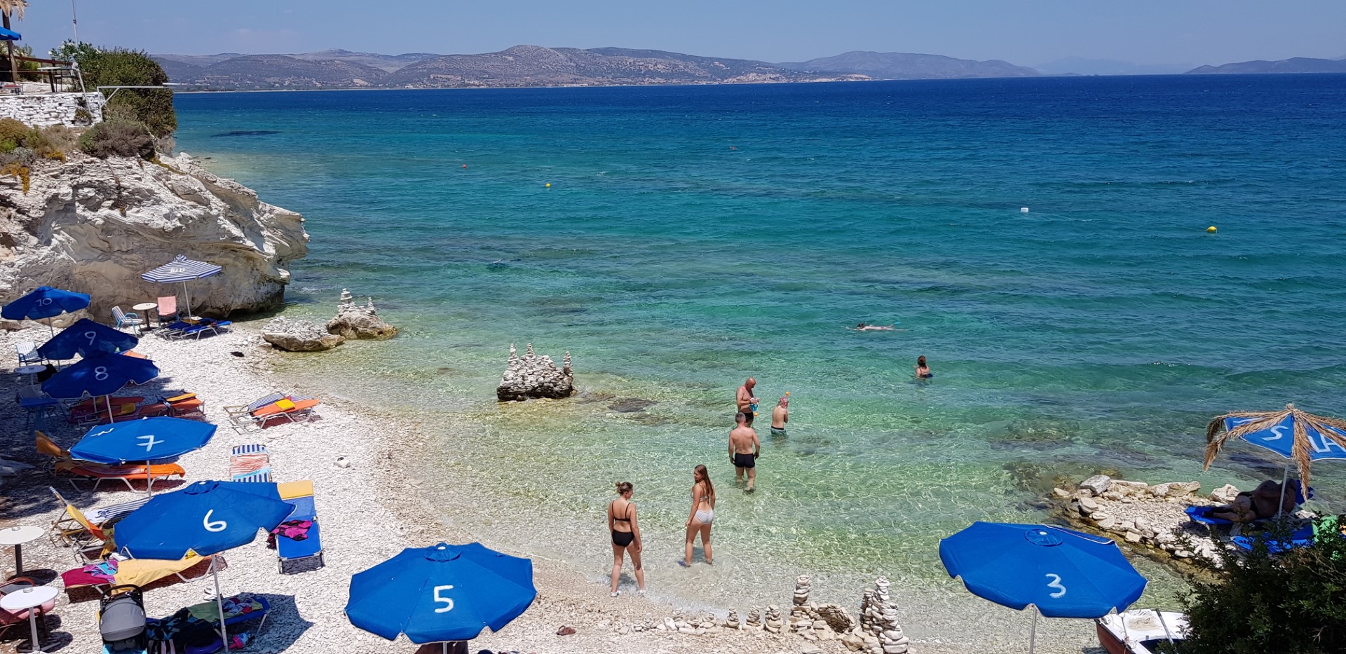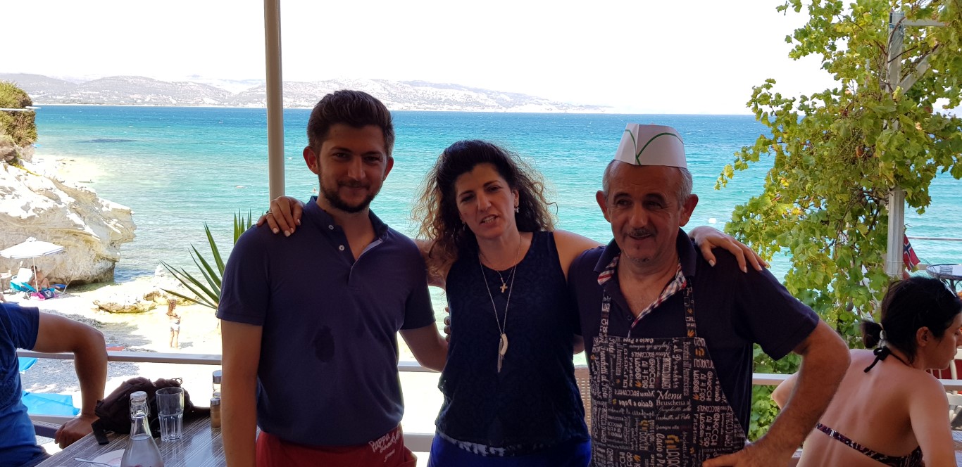 Εκεί που απόκρημνα βράχια συναντούν τα γαλαζοπράσινα νερά του Αιγαίου, στην περίφημη Papas Beach της Σάμου… συναντούμε και τον Τρικαλινό Κώστα Μουστάκα, με την οικογένειά του.