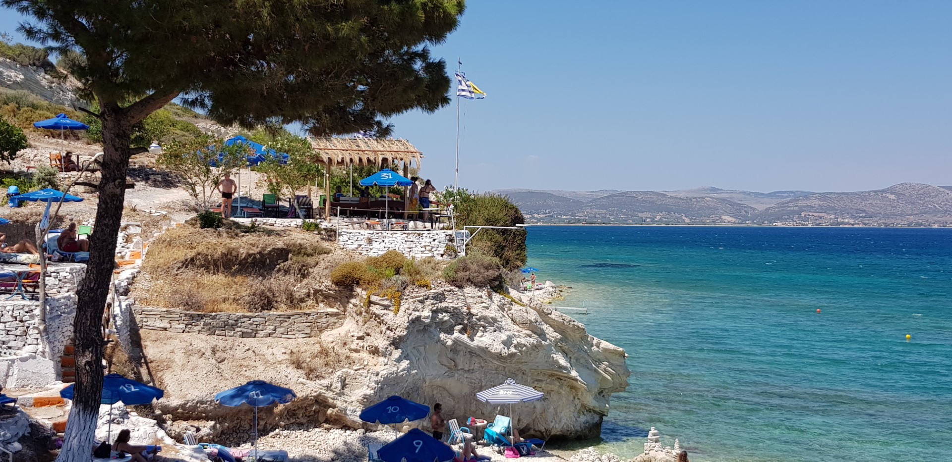 Ο Κώστας Μουστάκας ερωτεύτηκε (… σφόδρα) τη Σαμιώτισσα Μαρία, κόρη του θρυλικού παπα Νικόλα, εφημερίου του χωρίου Παγώδνα της Σάμου. Ο παπάς (… ιδιαίτερα χαρισματικός) είχε ένα καλυβάκι στην άκρη των βράχων για να αγναντεύει το απέραντο γαλάζιο. Σε αυτό το καλυβάκι επένδυσαν τα όνειρά τους οι νέοι τότε Κώστας και Μαρία και από το 1993 προσφέρουν τα πιο νόστιμα φαγητά (… κεφτεδάκια μαμαδίστικα, ομελέτες, γύρο σπιτικό και μαγειρευτά κάθε μέρα) δροσερούς καφέδες και αναψυκτικά στους πιστούς τους παραθεριστές.