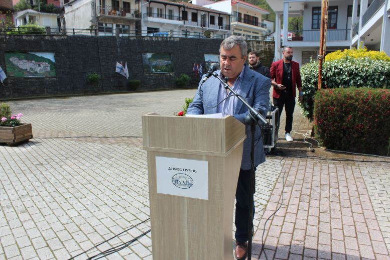 Την εκδήλωση παρουσίασε ο κ. Κοσμάς Παναγιώκας ο οποίος κάλεσε στο βήμα τον Δήμαρχο Πύλης κ. Κων/νο Μαράβα για ένα σύντομο χαιρετισμό.