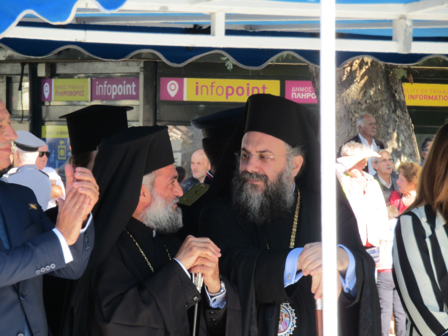 Όπως κατέγραψε το trikalavoice.gr  το πρωί έγινε η έπαρση της Ελληνικής σημαίας στην πλατεία και σήμαναν χαρμόσυνα οι καμπάνες.