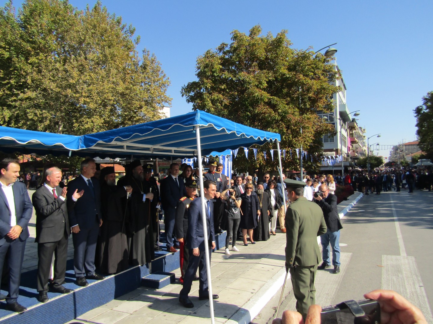 Ακολούθησε Δοξολογία στον Μητροπολιτικό Ναό Αγίου Νικολάου υπό του Ποιμενάρχου ημών Χρυσοστόμου, συγχοροστατούντος του Επισκόπου Στρατονικείας Στεφάνου, κατάθεση στεφάνων στο Ηρώο της ΣΜΥ και έπειτα η παρέλαση ενώπιον του υφυπουργού Αγροτικής Ανάπτυξης Κώστα Σκρέκα που εκπροσώπησε την Κυβέρνηση και των Αρχών του τόπου.