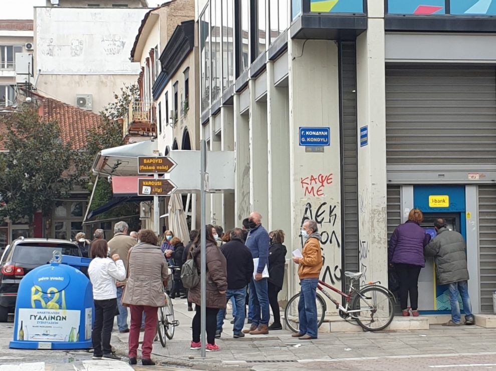 Όπως κατέγραψε το trikalavoice.gr ουρές σχηματίζονταν έξω από το κατάστημα ΕΛΤΑ επί της Στρατηγού Σαράφη, αλλά και σε κεντρικές τράπεζες της πόλης.