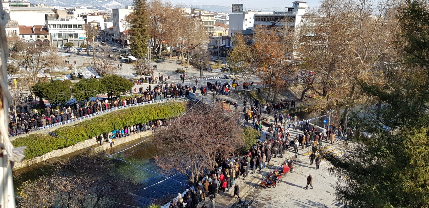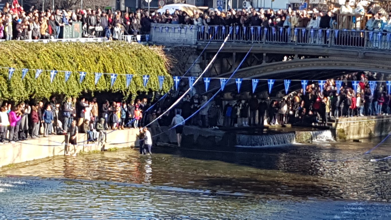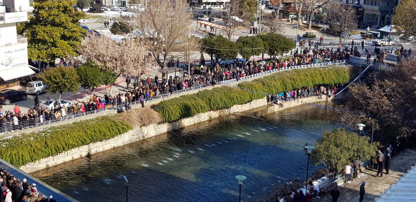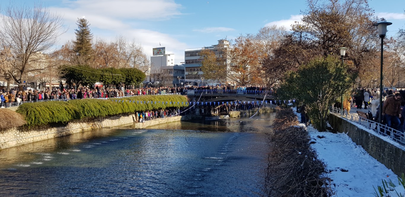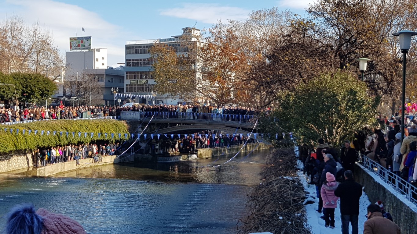Όπως κατέγραψε το trikalavoice.gr ακολούθως σχηματίστηκε πομπή μέχρι την κεντρική πεζογέφυρα του Ληθαίου ποταμού, όπου και έγινε η κατάδυση του Τιμίου Σταυρού, παρουσία των Αρχών του τόπου.