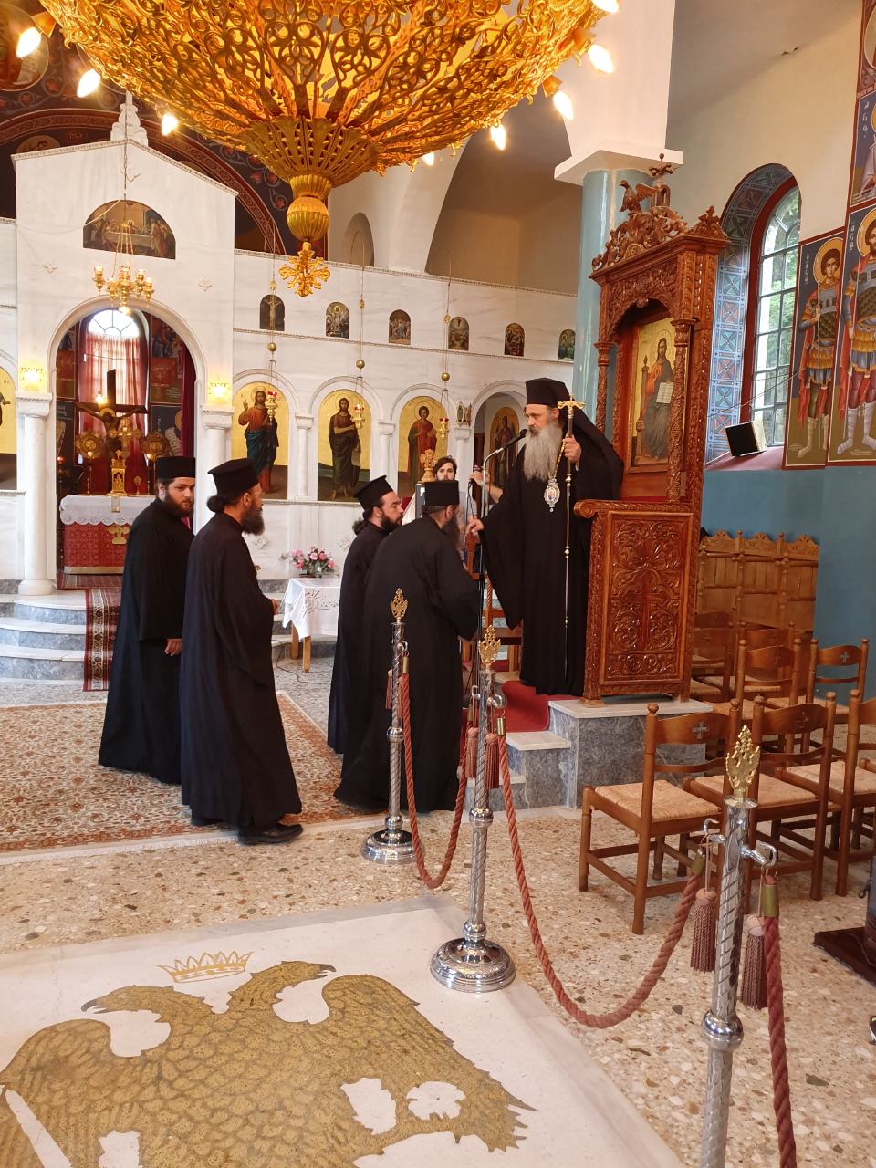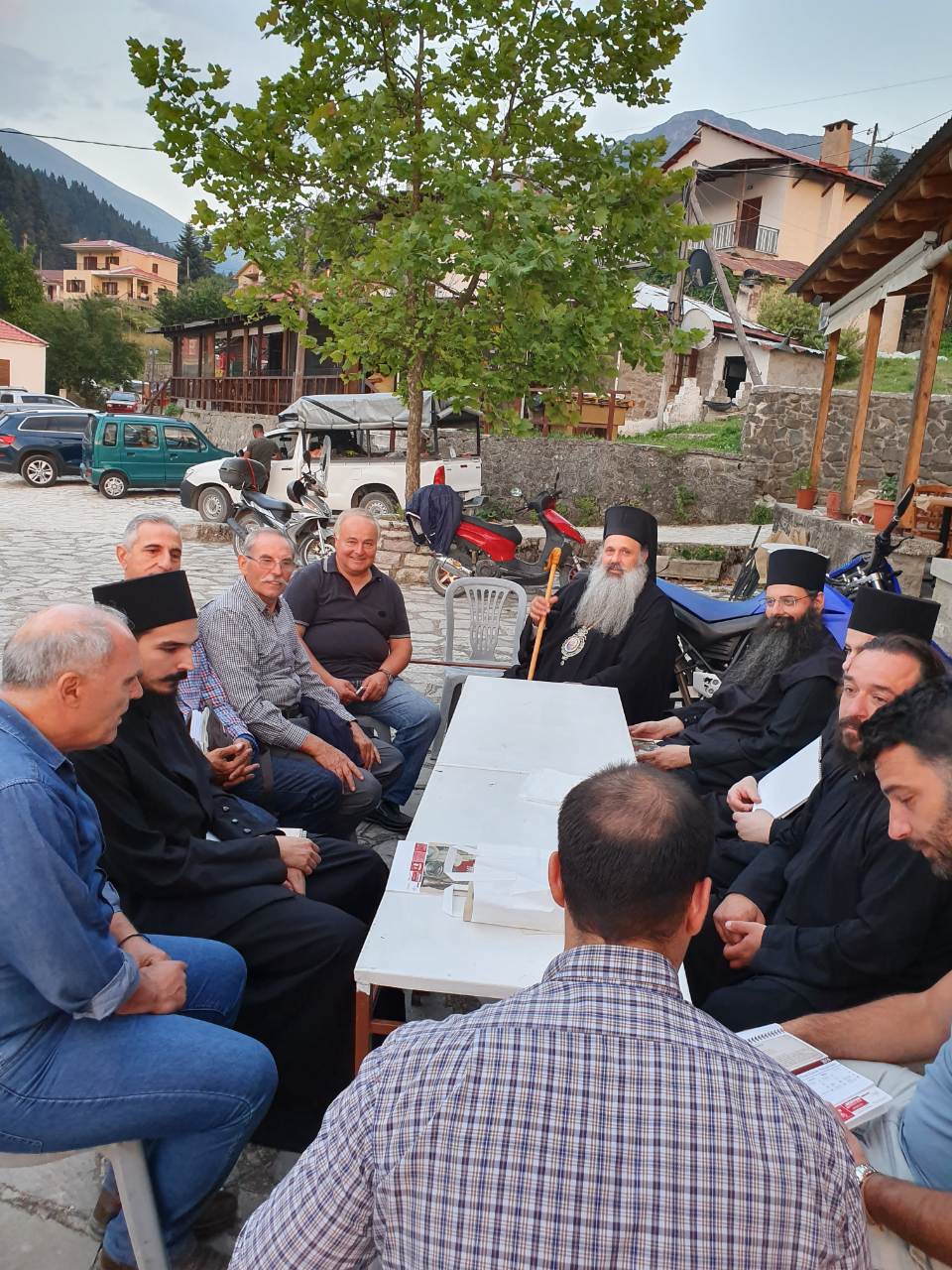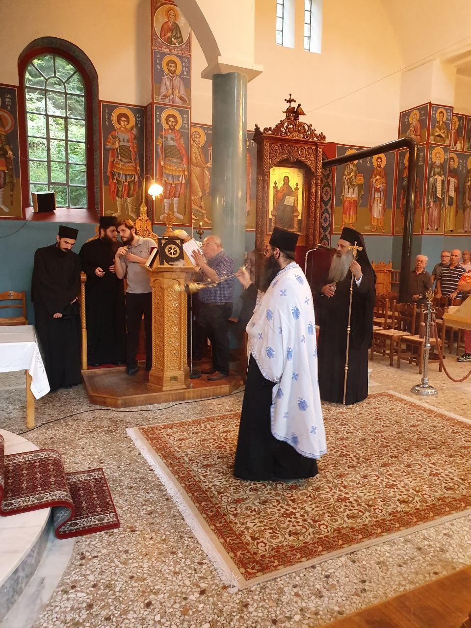 Στον περικαλλή Ναό,  τον υποδέχθηκαν πολλοί χωριανοί αλλά και παραθερίζοντες , οι οποίοι συνέρευσαν για να τιμήσουν την Παναγία. Τον σεπτό Ποιμενάρχη μας τον πλαισίωσε ο Καθηγούμενος του Μεγάλου Μετεώρου Αρχιμανδρίτης Νήφων και η συνοδεία του .