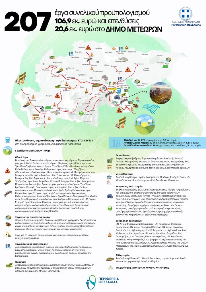Η παρουσία του σε θέσεις ευθύνης επιβεβαιώνει γιατί χρειάζεται ο τόπος δημιουργικούς ανθρώπους, με γνώση των προγραμμάτων που τρέχουν και τα οποία είναι δυνατόν να ενισχύσουν την τοπική οικονομία. Έδρασε για τη Θεσσαλία, για το νομό Τρικάλων και αναγέννηση κυριολεκτικά την επαρχία Καλαμπάκας, απ’ όπου κατάγεται. Εκεί και σύμφωνα με τα επίσημα στοιχεία της Περιφέρειας Θεσσαλίας που φιλοξενεί το trikalavoice.gr έπεσε συνολικά 127.5 εκ. €, σε επενδύσεις και έργα υποδομής (σ.σ. αναφέρονται λεπτομερώς παρακάτω). Ο ίδιος δηλώνει ότι “είμαστε εδώ για να δουλέψουμε κι αυτό κάνουμε. Να δουλέψουμε για τον κόσμο, για τους πολίτες που μας εμπιστεύονται και εναποθέτουν σε εμάς ελπίδες για ένα καλύτερο μέλλον. Και έτσι θα είναι. Προχωράμε με σχέδιο και πρόγραμμα για την επόμενη 5ετία, σοβαρά και υπεύθυνα”.
