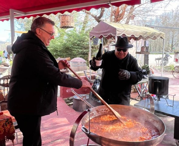 Έφτασε στου Μαγκλάρα, κάτω από τα Μετέωρα, και με τον αδελφικό του φίλο Γιάννη Πίσσα, τον επονομαζόμενο “Μαγκλάρα” μαγείρεψαν γαριδομακαρονάδα την οποία έσβησαν με… LYKOS WINERY EYIA!!!… Απολαύστε υπεύθυνα στο video του trikalavoice.gr: