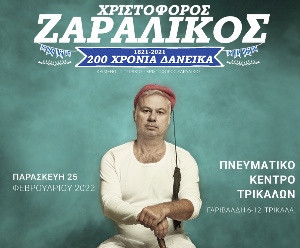 Link προπώλησης: https://www.hahcomedy.com/tickets/ontour/cultural-center-of-trikala/zaralikos-1821-2021-diakosa-xronia-danika Πληροφορίες: Τηλ.: 2114185217