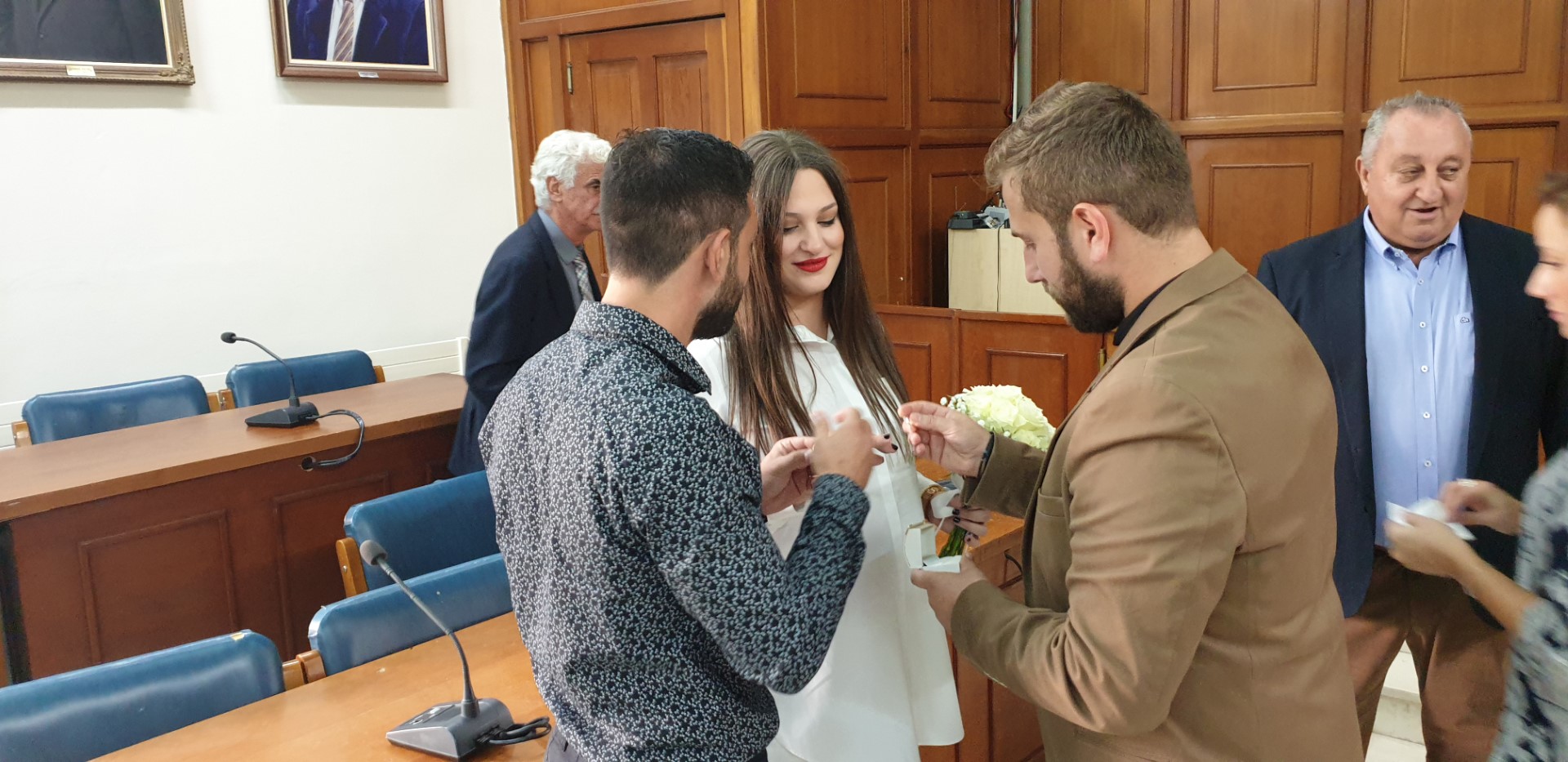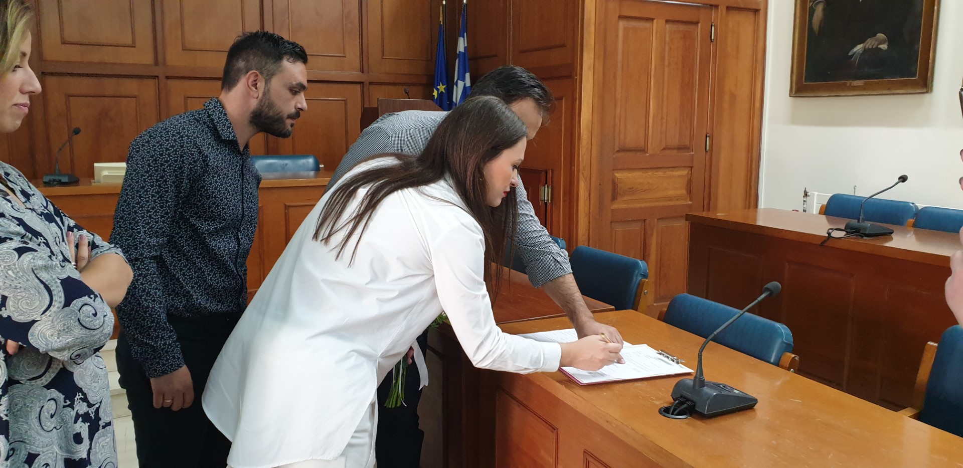 Στα δυο παιδιά ευχήθηκαν στενοί φίλοι και συγγενείς που βρέθηκαν στο Δημαρχείο.