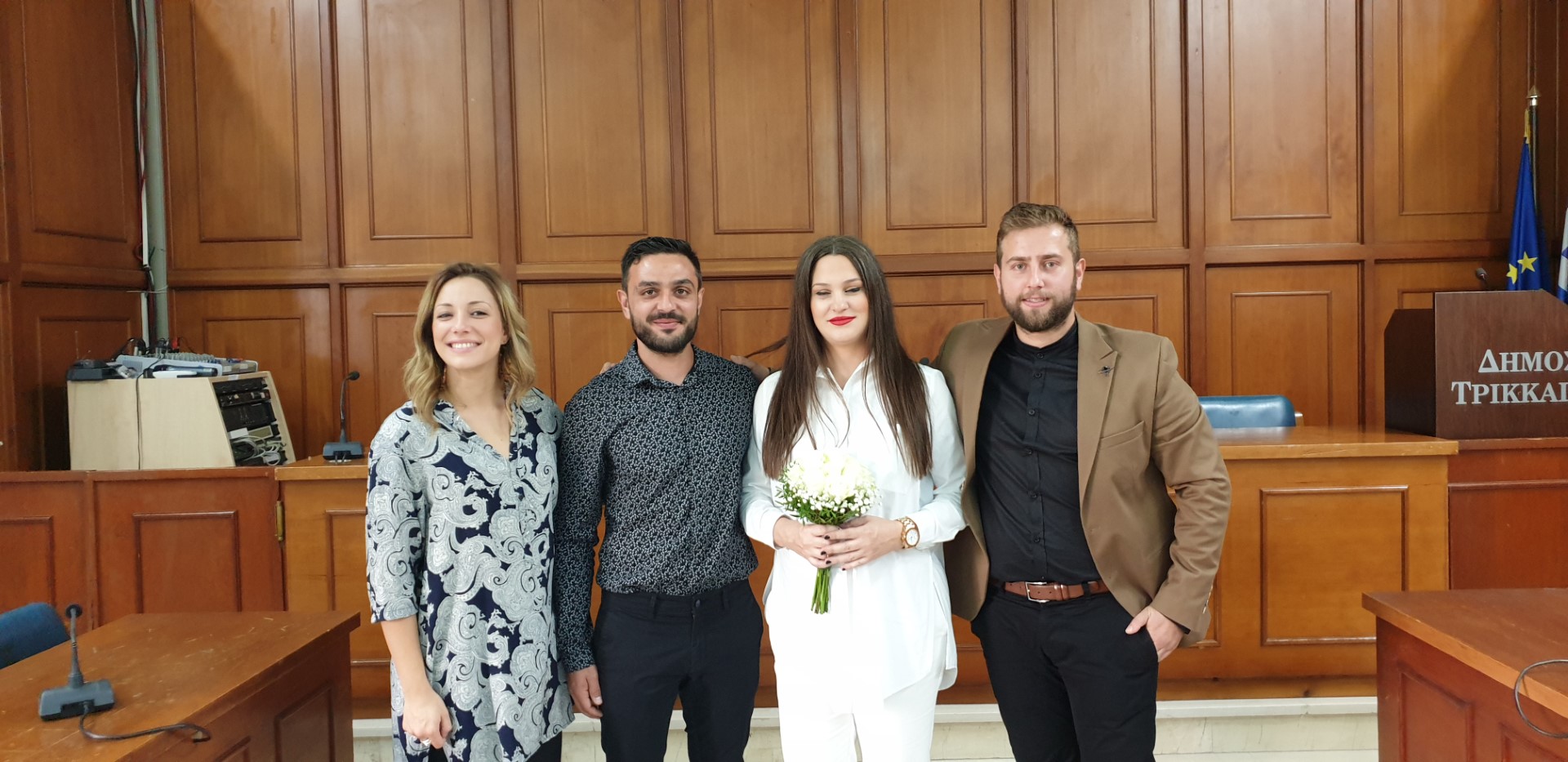 Η σεμνή τελετή έγινε το μεσημέρι της Παρασκευής στο Δημαρχείο των Τρικάλων με μάρτυρες-κουμπάρους τον Νίκο Μπαλατσούκα και τη Χριστίνα Ζήση.