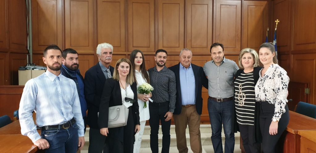 Η σεμνή τελετή έγινε το μεσημέρι της Παρασκευής στο Δημαρχείο των Τρικάλων με μάρτυρες-κουμπάρους τον Νίκο Μπαλατσούκα και τη Χριστίνα Ζήση.