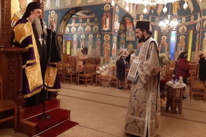 Το απόγευμα της Παρασκευής τελέστηκαν ο Εσπερινός και οι Α΄ Χαιρετισμοί υπό του Μητροπολίτου Σταγών & Μετεώρων Θεοκλήτου. Ο κ. Θεόκλητος προεξήρχε και της Αρχιερατικής Θείας Λειτουργίας, την κυριώνυμο της εορτής το πρωί του Σαββάτου, συμμετοχή των Ηγουμένων της Μονής Μεγάλου Μετεώρου Αρχιμανδρίτου Νήφωνος Καψάλη, Αγίας Τριάδας Μετεώρων Αρχιμανδρίτου Δομέτιου Ντελή , Αγίου Νικολάου Αναπαυσά Θεοφάνους Κάσσου και Αγίου Νικολάου Σιαμάδων Αρχιμανδρίτου Μακαρίου Ιακωβάκη.