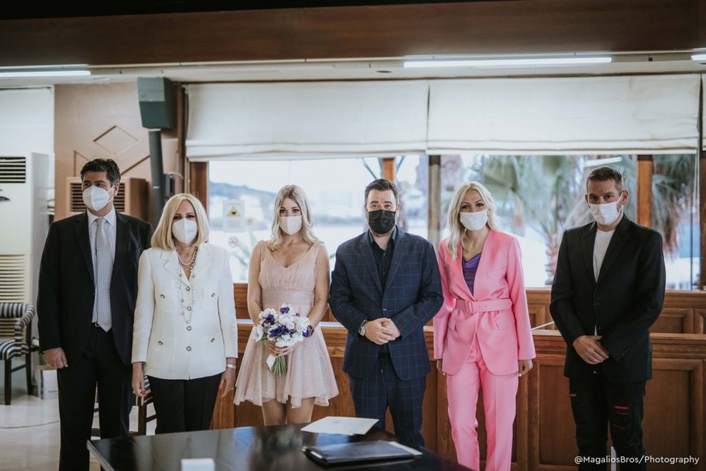 Όπως κατέγραψε το trikalavoice.gr ο γάμος τελέστηκε το απόγευμα του Σαββάτου σε στενό κύκλο και με αυστηρή τήρηση των υγειονομικών πρωτοκόλλων, στο Δημαρχείο της Βούλας.