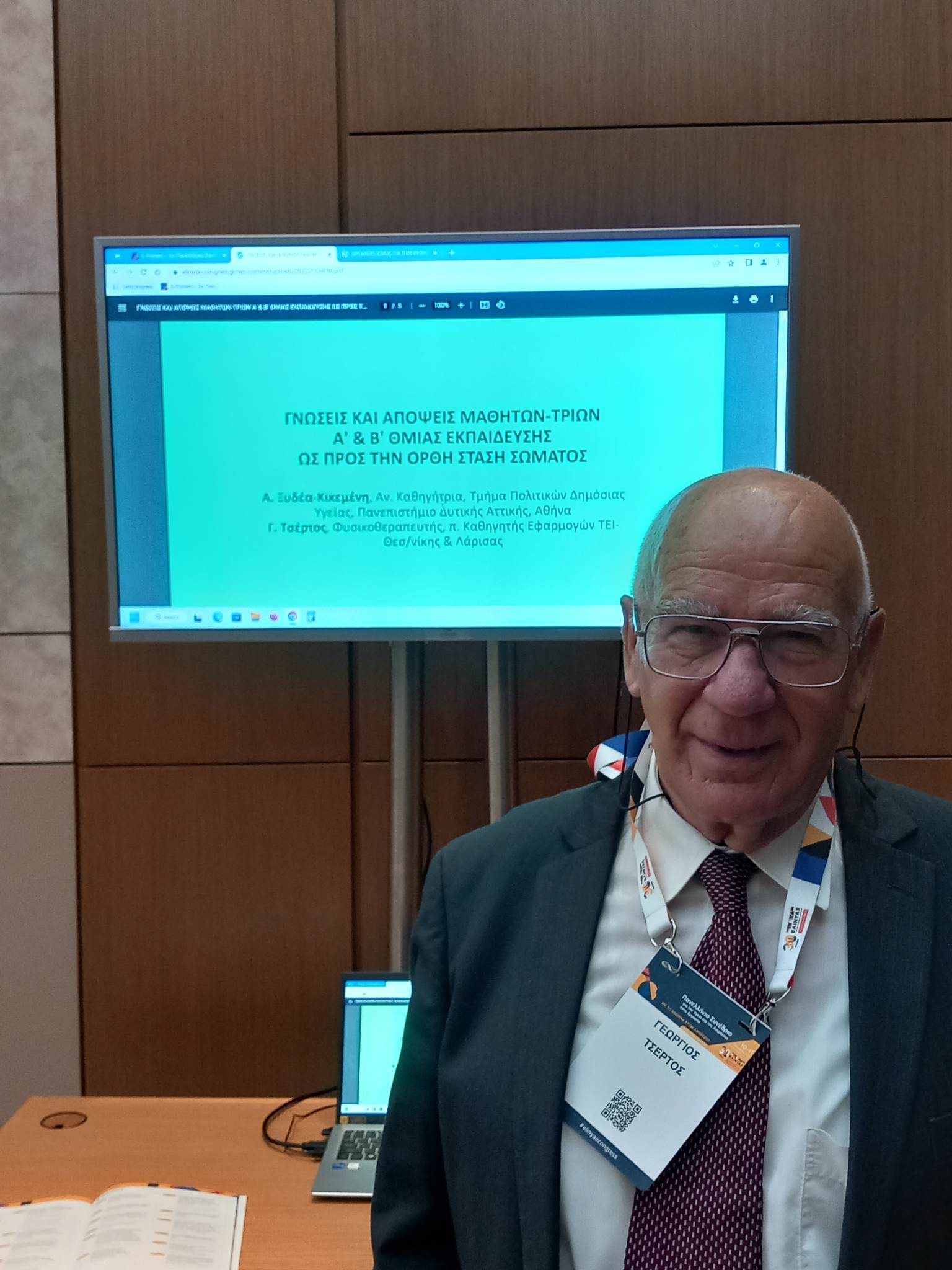 Με χαρά πληροφορηθήκαμε πως μεταξύ των συνέδρων ήταν ο κ. Γεώργιος Τσέρτος, Φυσικοθεραπευτής καθως παρουσιάσθηκαν τα αποτελέσματα της έρευνας, με θέμα ΄΄ΓΝΩΣΕΙΣ ΚΑΙ ΑΠΟΨΕΙΣ ΤΩΝ ΜΑΘΗΤΩΝ ΠΡΩΤΟΒΑΘΜΙΑΣ ΚΑΙ ΔΕΥΤΕΡΟΒΑΘΜΙΑΣ ΕΚΠΑΙΔΕΥΣΗΣ ΩΣ ΠΡΟΣ ΤΗΝ ΟΡΘΗ ΣΤΑΣΗ ΤΟΥ ΣΩΜΑΤΟΣ΄΄ Σημαντικό είναι το γεγονός πως η έρευνα αυτή οργανώθηκε και πραγματοποιήθηκε από τον εμπνευστή της, Prof. Γ. Τσέρτο (Επιστημονικό Συνεργάτη Πανεπιστημίου Δ. Αττικής και Εντ. Επιμελητή Πανεπιστήμιου Ρώμης) και την κ. Α. Ξυδέα – Κικεμένη (Αν. Καθηγήτρια Πανεπιστήμιου Δ. Αττικής), ως επιστημονική υπεύθυνη.