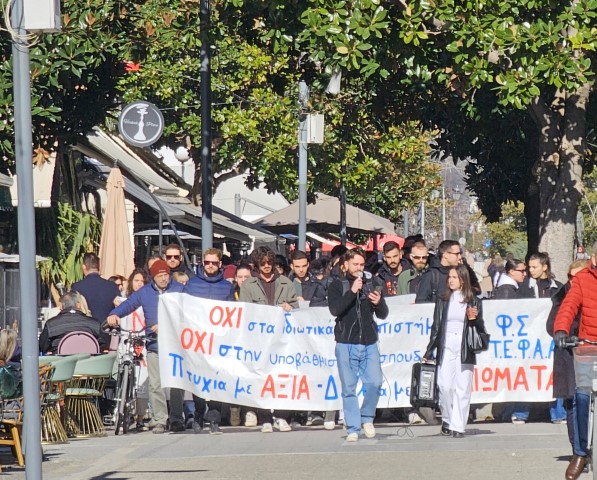 Μαζική συμμετοχή των φοιτητών των Τρικάλων σε συλλαλητήριο διαμαρτυρίας το πρωί της Πέμπτης, με αφορμή το Νομοσχέδιο του Υπουργείου Παιδείας που προβλέπει μεταξύ των άλλων την ίδρυση μη κρατικών Πανεπιστημίων.