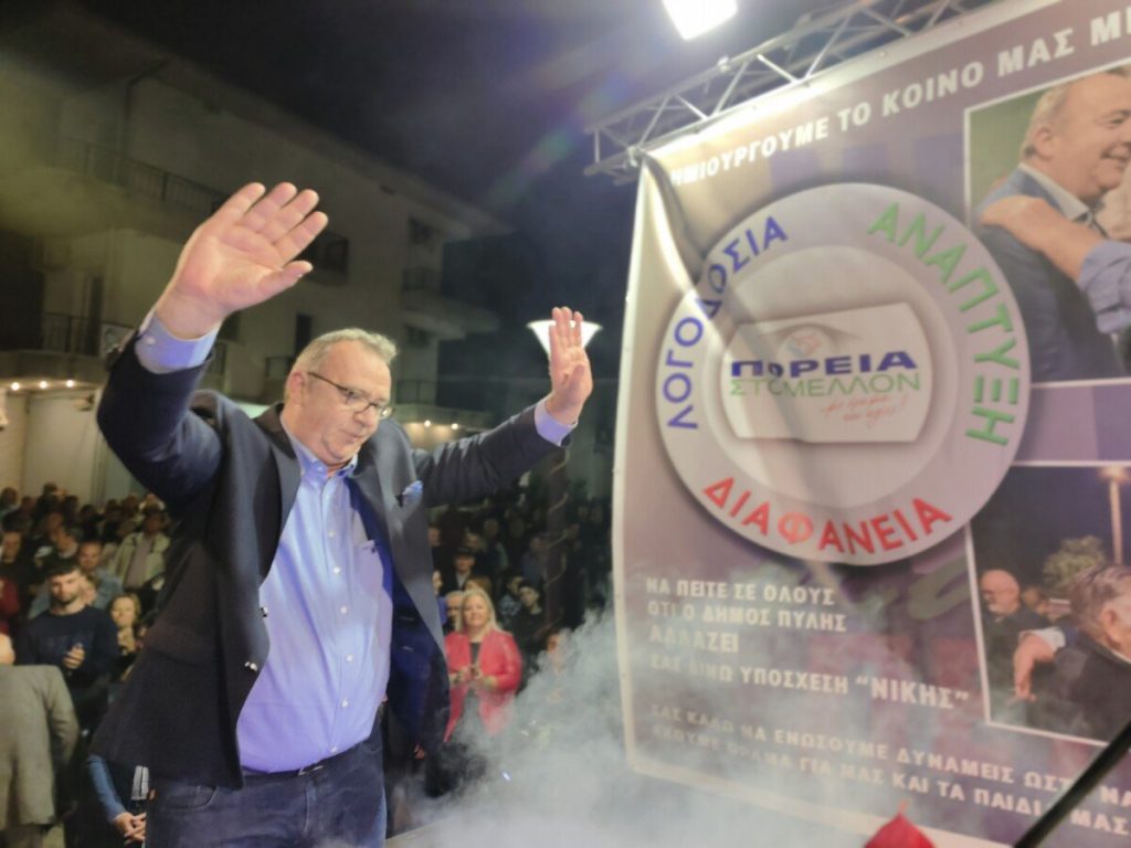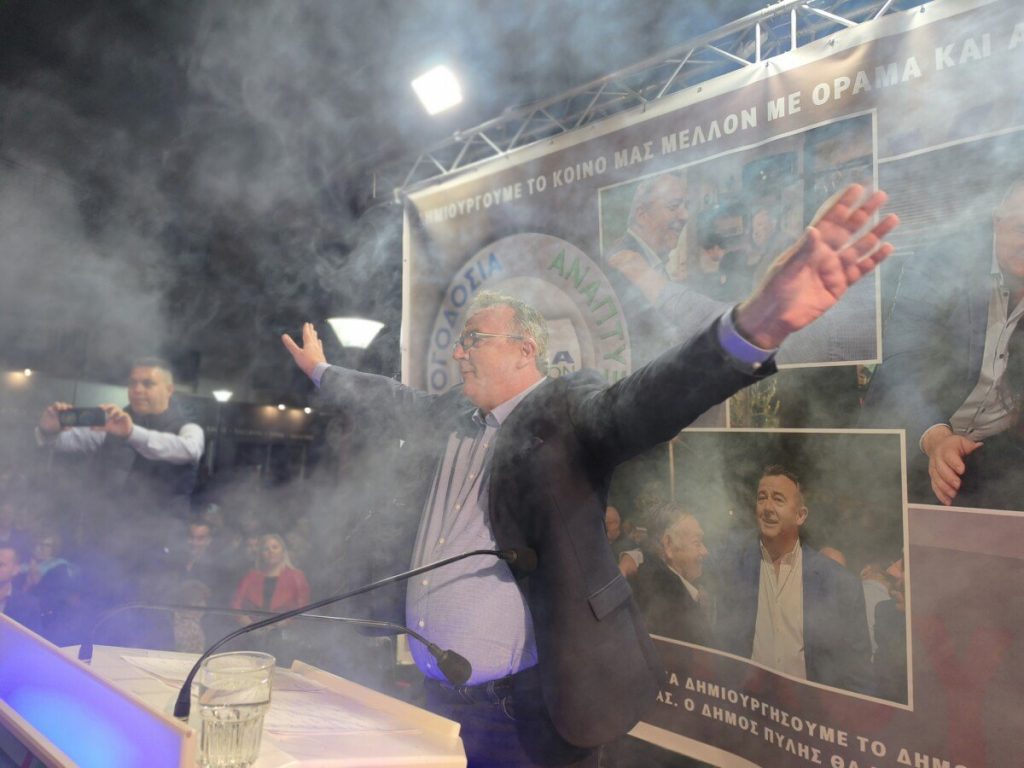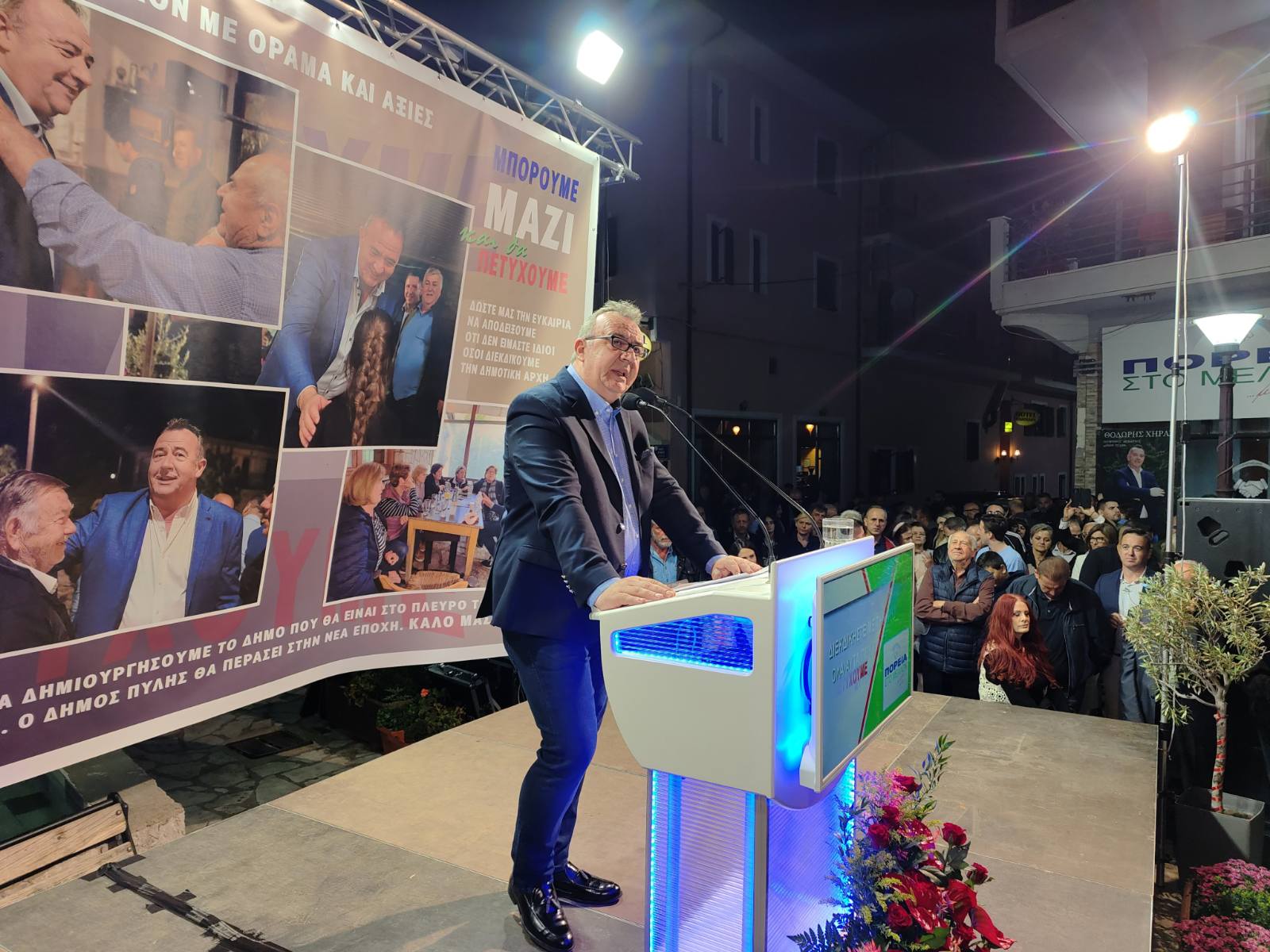 Παρουσία πλήθους κόσμου ο υποψήφιος δήμαρχος Δήμου Πύλης Θοδωρής Χήρας πραγματοποίησε χθες βράδυ την κεντρική του ομιλία στην Πύλη.