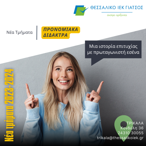 Το Θεσσαλικό ΙΕΚ Γιάτσος στα ΤΡΙΚΑΛΑ σας περιμένει για μια συναρπαστική, μοναδική εμπειρία με υψηλούς στόχους, διακρίσεις, με μια ομάδα που κύριο μέλημα της είναι να παρέχει στους πρωταγωνιστές της, με τις εκπαιδευτικές της υπηρεσίες, τα θεμέλια για μια πολλά υποσχόμενη εκπαιδευτική και επαγγελματική ανέλιξη, μια εξασφάλιση για το μέλλον!