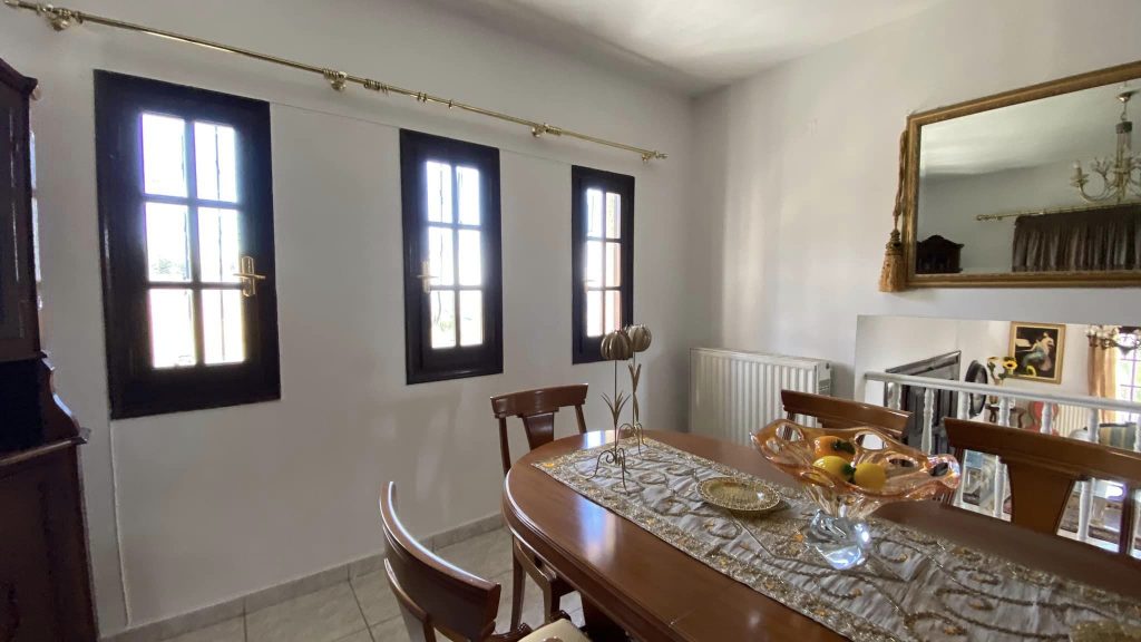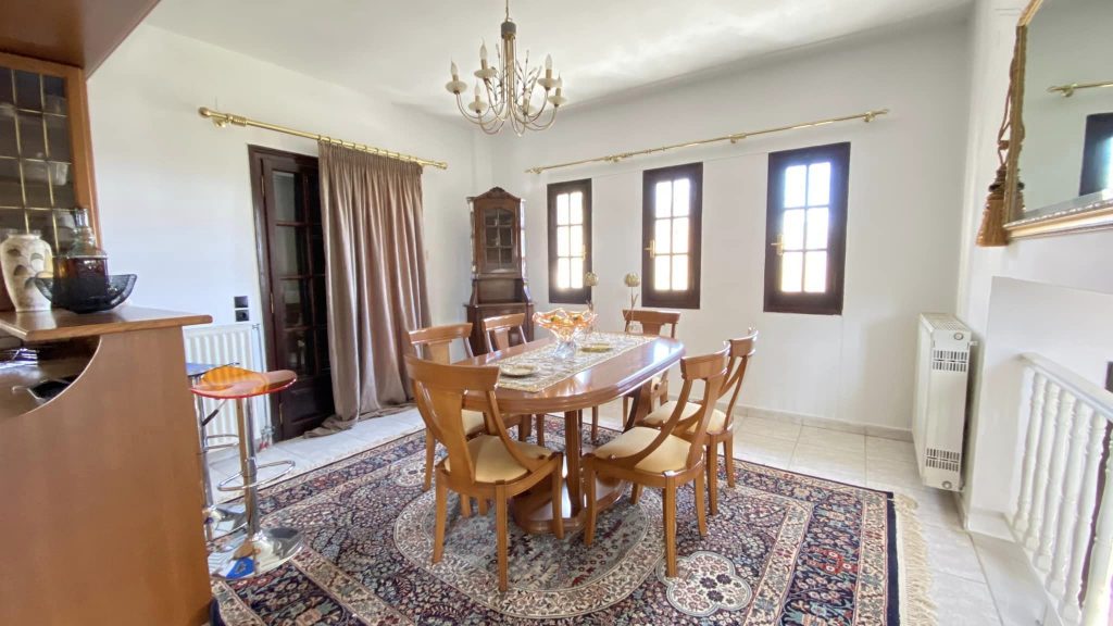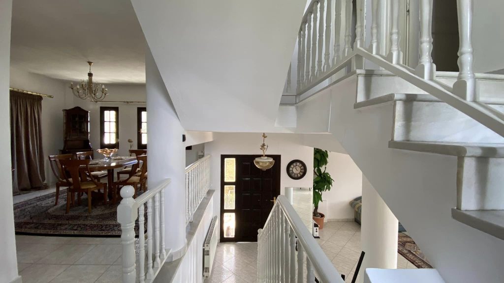 Στον 1ο όροφο συναντάμε ωραιότατο χώρο υποδοχής τζάκι, χώρο τραπεζαρίας, κουζίνα, και 1 μπάνιο. Ανεβαίνοντας στον 2ο όροφο υπάρχουν στην ζώνη ύπνου 4 υπνοδωμάτια και ένα μεγάλο μπάνιο, με βεράντες με εξαιρετική θέα σε πράσινο.