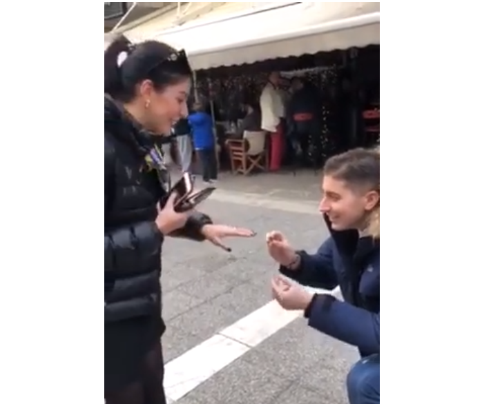Νωρίς το μεσημέρι της παραμονής των Χριστουγέννων και δίχως κανείς να γνωρίζει τίποτα, κι ενώ τα παιδιά περπατούσαν στην Ασκληπιού ο Γιώργος γονάτισε μπροστά στο FRAME και προσέφερε δαχτυλίδι στη Λίλια και της ζήτησε να τον παντρευτεί!… Μετά την αρχική της έκπληξη, όπως φαίνεται και στο βίντεο του trikalavoice.gr η Λίλια δέχθηκε με χαρά και συγκίνηση.