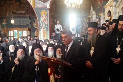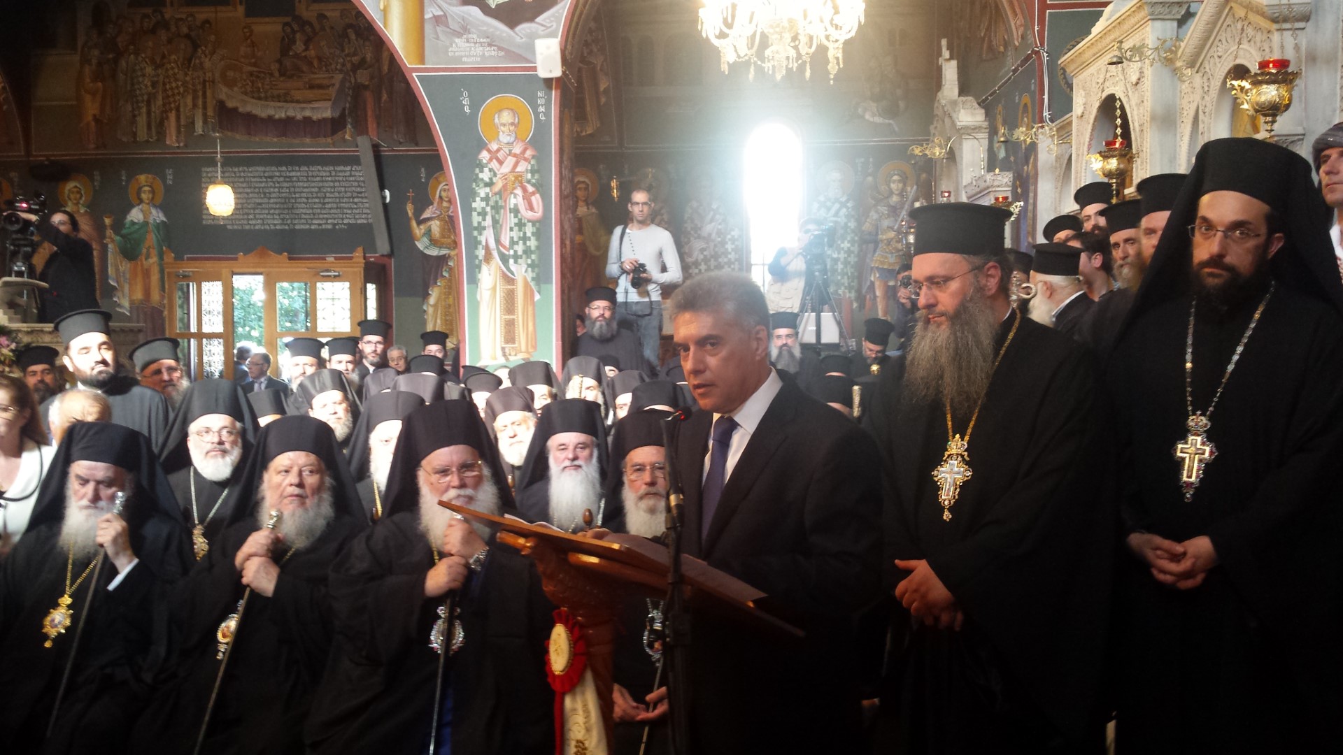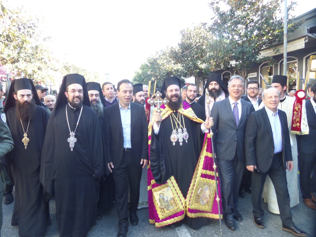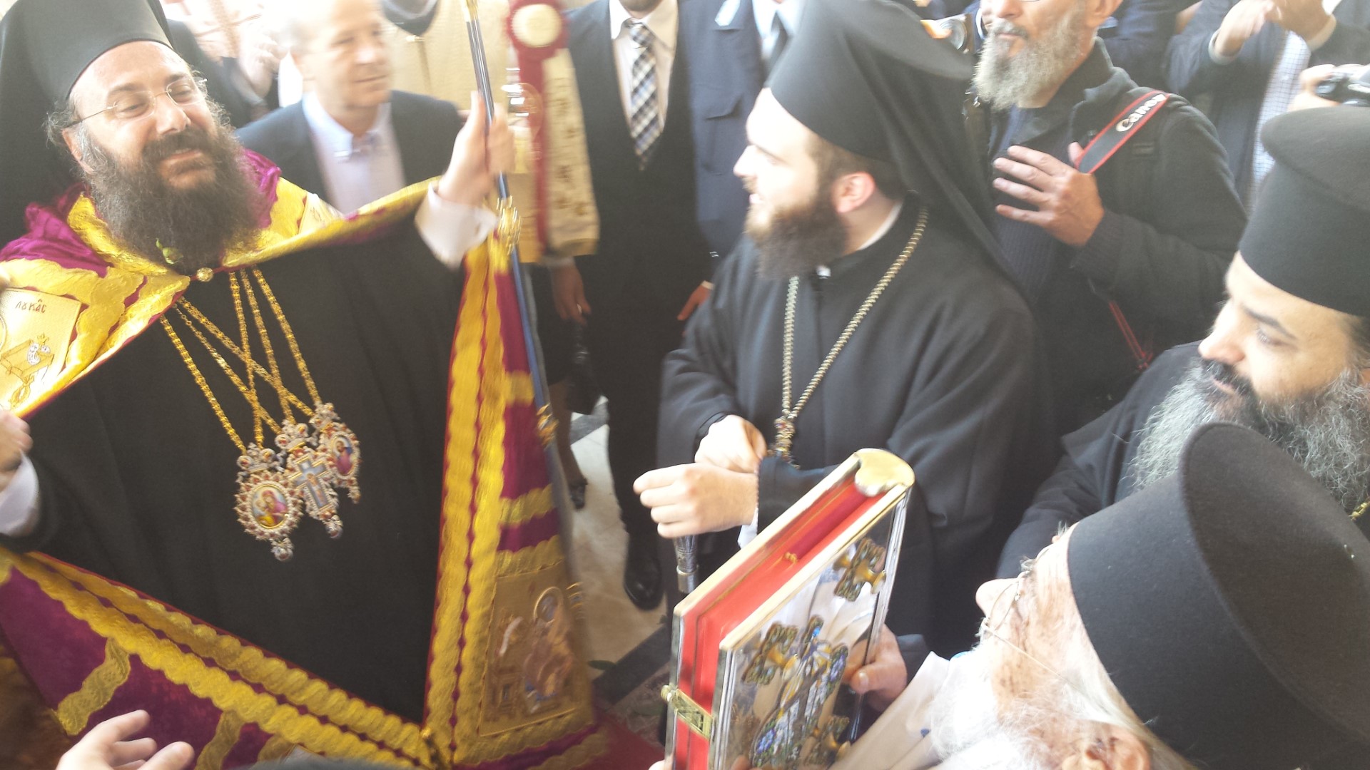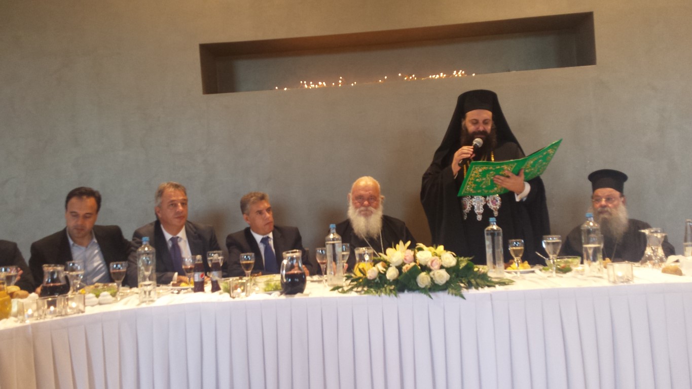Εκεί ο δήμαρχος Τρικκαίων Δημήτρης Παπαστεργίου προσφώνησε τον νέο μας Μητροπολίτη, καλωσορίζοντάς τον «με πρόσθετη χαρά, γιατί υποδεχόμαστε έναν νέον άνθρωπο. Είμαι σίγουρος, ότι η διάθεση για ποιμαντορικό έργο ισάξιο των πατέρων της εκκλησίας, συμβαδίζει με την πρόνοια για την ενίσχυση των δεσμών Αγάπης στην κοινωνία μας. Το έργο σας είναι δύσκολο. Είναι όμως και ιερό. Είναι το έργο της αγάπης, της συμπόνιας, της συμπαράστασης. Είναι το έργο της ελπίδας, της χαράς, της προσμονής, των αγνών πιστεύω. Αυτό το έργο, είμαι σίγουρος ότι θα το φέρετε σε πέρας. Άξιος»!