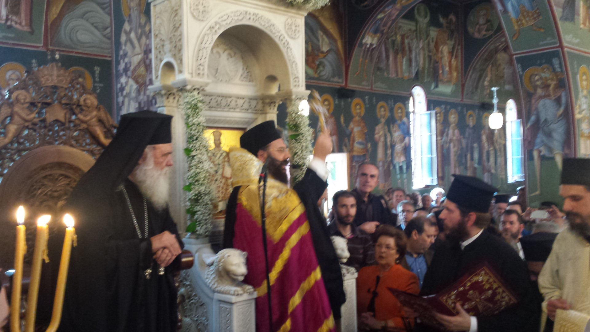 Εκεί ο κ. Χρυσόστομος ανέγνωσε τον Επιβατήριο Λόγο του περιγράφοντας τους στόχους της Ιεράς του Αποστολής και λέγοντας χαρακτηριστικά «… «Εἰρήνην ἐπί τόν λαόν αὐτοῦ». Αὐτή εἶναι κατ’ ἐμέ ἡ κύρια ἀποστολή μου. Εἰρήνη σημαίνει τήν βεβαιότητα τῶν καρδιῶν ὅτι Κύριος ὁ Θεός δέν θά μᾶς ἐγκαταλείψει. Ὁσοδήποτε δύσκολοι καί ἄν εἶναι οἱ καιροί τούς ὁποίους διερχόμεθα, τό χρέος τοῦ Ἐπισκόπου εἶναι νά μαρτυρεῖ τήν βεβαιότητα τῆς ἀγάπης καί τοῦ ἐλέους τοῦ Θεοῦ στόν καθέναν ἄνθρωπο προσωπικά, ἀλλά καί στόν λαό τοῦ Θεοῦ ἐν συνόλῳ».