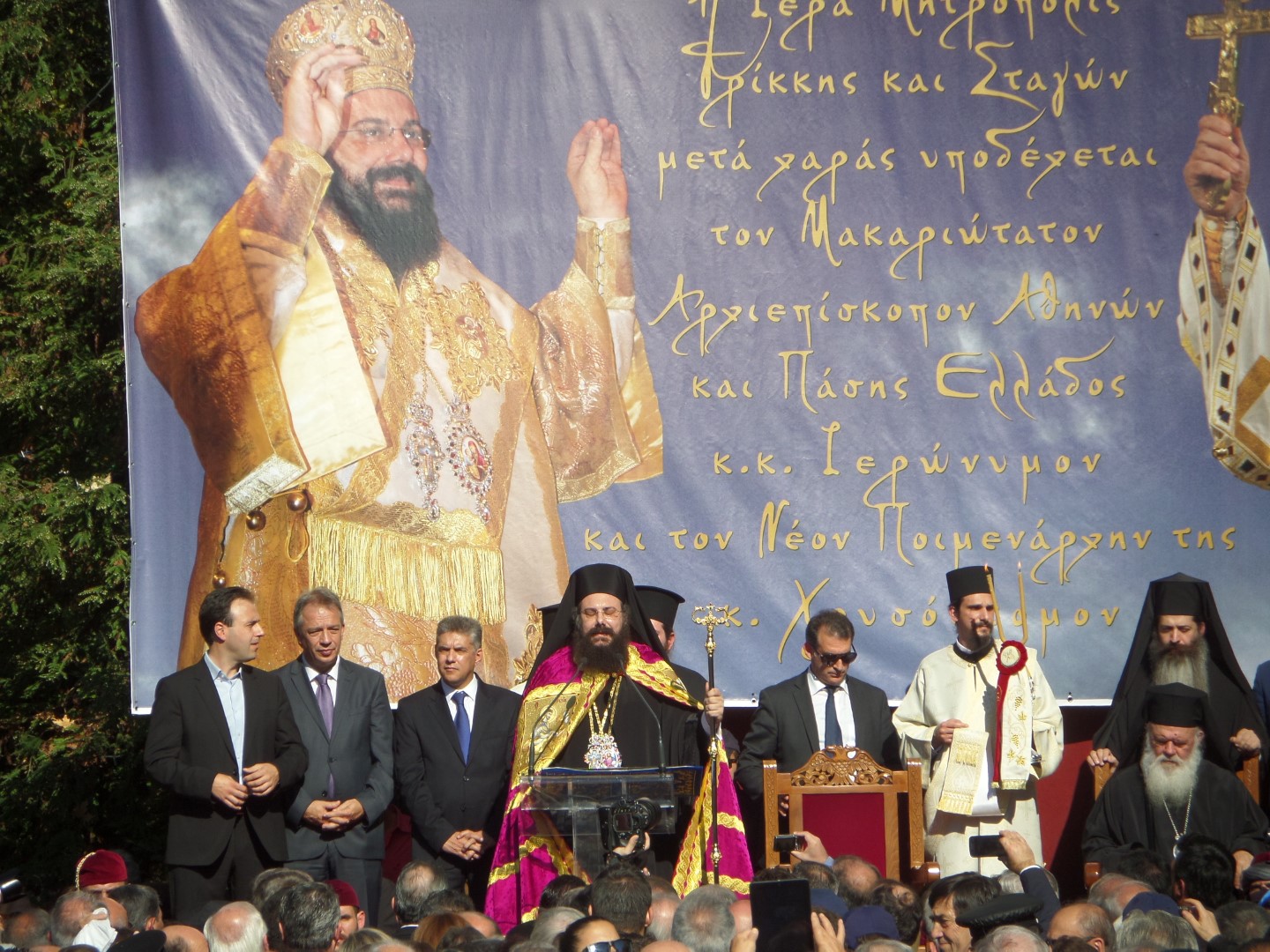 Η υποδοχή του νέου Μητροπολίτου Τρίκκης & Σταγών Χρυσοστόμου, εις διαδοχήν του γέροντος Τρίκκης Αλεξίου, έγινε με Βυζαντινή λαμπρότητα και μεγαλοπρέπεια στην κεντρική πλατεία των Τρικάλων, υπό του Αρχιεπισκόπου Αθηνών και Πάσης Ελλάδος Ιερωνύμου, πλειάδας Αρχιερέων, του Ιερού Κλήρου και του λαού της επαρχίας μας.