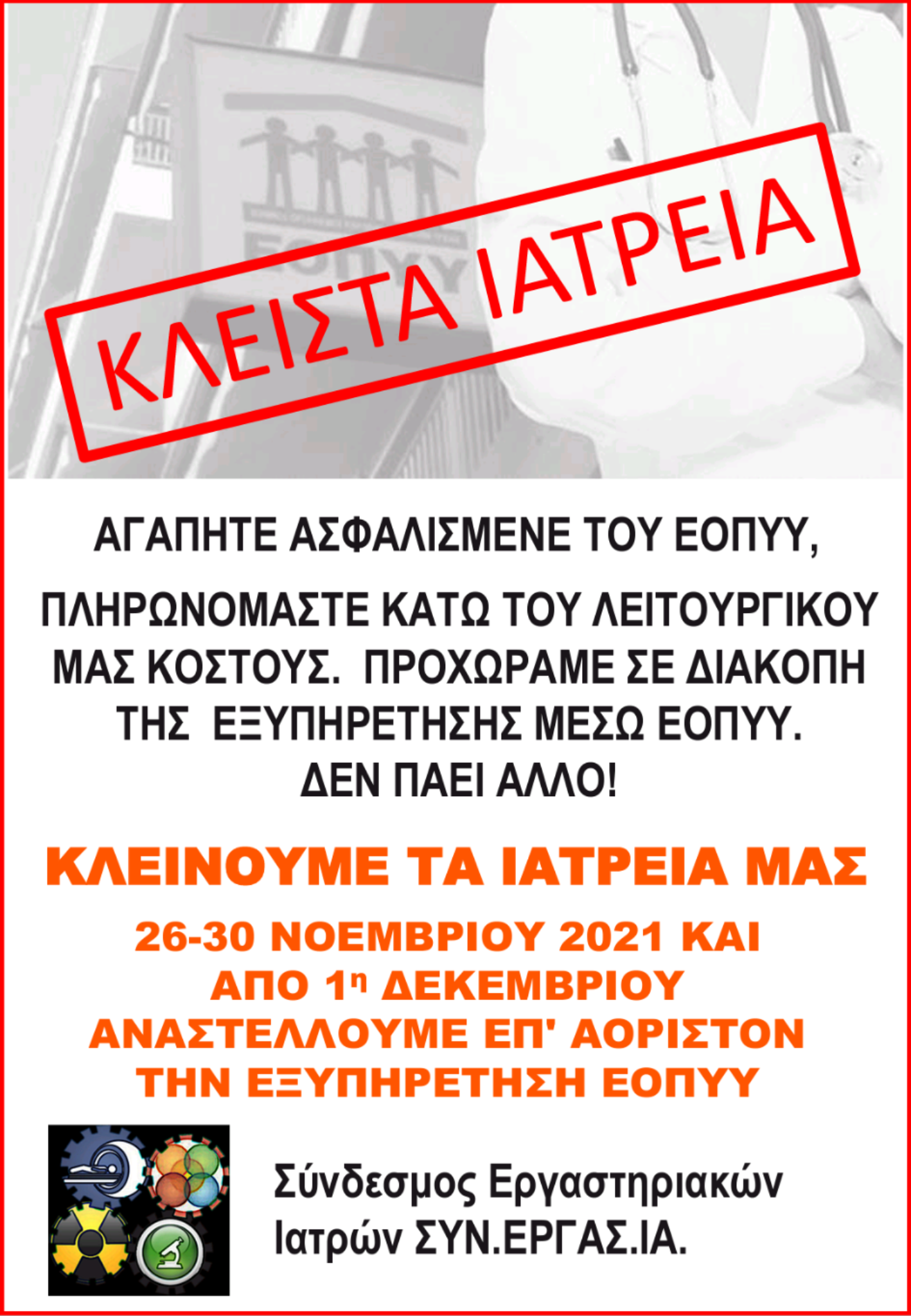 Νέες κινητοποιήσεις για τα μικροβιολογικά ιατρεία και τα διαγνωστικά κέντρα (ακτινογραφίες κλπ.) καθώς το λειτουργικό τους κόστος είναι δυσβάσταχτο σε σχέση με την αποζημίωση που λαμβάνουν από τον ΕΟΠΥΥ.