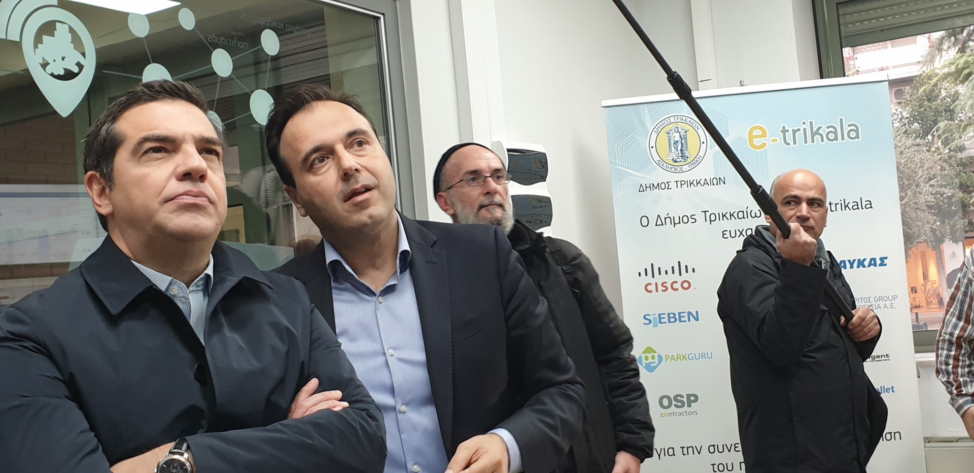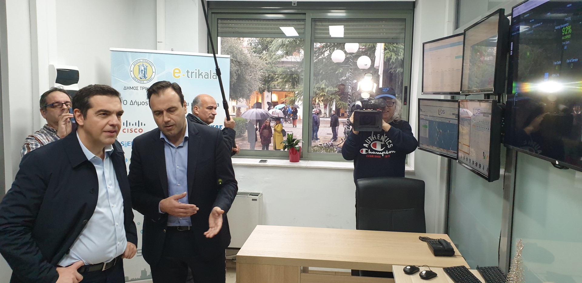 Όπως κατέγραψε το trikalavoice.gr αρχικά επισκέφτηκε το χώρο του Μουσείου Τσιτσάνη και ακολούθως διέσχισε τον κεντρικό πεζόδρομο της Ασκληπιού, συνομιλώντας με τους πολίτες. Ο Αλέξης Τσίπρας έγινε δεκτός στο Δημαρχείο από τον δήμαρχο Τρικκαίων και πρόεδρο της ΚΕΔΕ Δημήτρη Παπαστεργίου. Αρχικά ενημερώθηκε από τον ίδιο τον δήμαρχο για τη λειτουργία του control room του Δήμου και από τον ειδικό συνεργάτη αυτού Γιώργο Χρυσόμαλλο για το πως εντοπίζονται με τη νέα τεχνολογία τα προβλήματα στη λειτουργία της πόλης και πως επιλύονται.