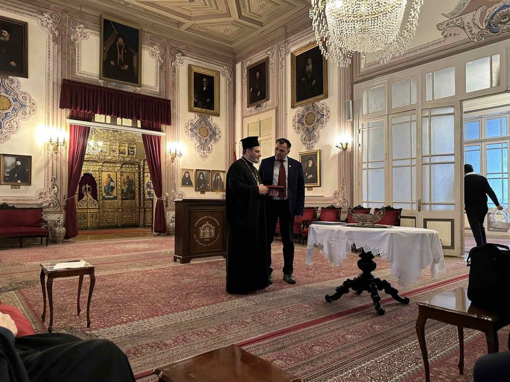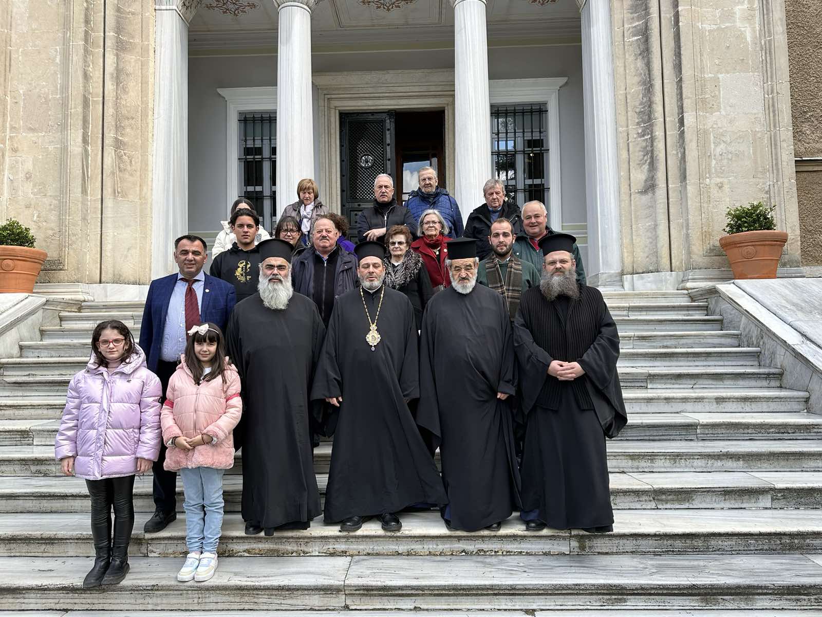 Παναγιώτατε, παρόλο που τα μέσα μαζικής ενημέρωσης όλες αυτές τις μέρες εξέδιδαν ανακοινώσεις για αποφυγή επισκέψεων στην Τουρκία λόγω επικείμενων τρομοκρατικών ενεργειών, παρά τις δυσμενείς καιρικές συνθήκες που επικρατούν αλλά και τον φοβερό σεισμό που έπληξε τη χώρα χθες, η αγάπη μας προς το σεπτό πρόσωπο σας υπερνίκησε τους φόβους μας, γι’ αυτό και πολλοί από εμάς ήρθαμε οικογενειακώς να σας επισκεφθούμε και να πάρουμε την ευχή σας. Και στρέφοντας το βλέμμα μας προς Εσας με ευγνωμοσύνη για το έργο που επιτελείτε, προσευχόμεθα υιικώς ο πανάγαθος Θεός να σας χαρίζει έτη πολλά, μεστά υγείας και έργων αγαθών”.