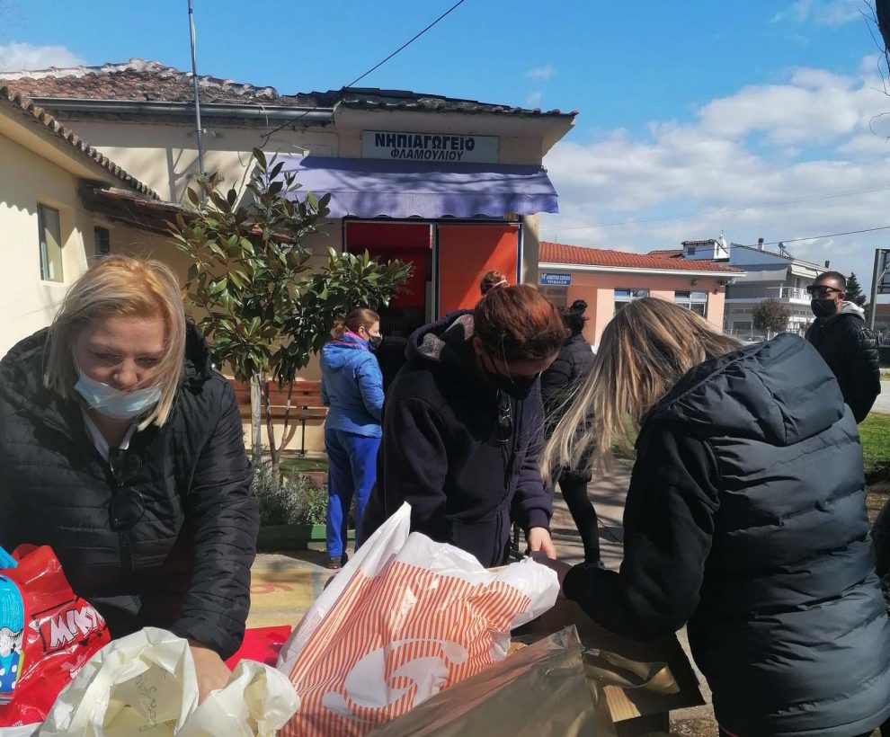 Αν κάποιος έχει ευαισθησία, αυτά είναι τα παιδιά. Έτσι λοιπόν και τα παιδιά του Μονοθέσιου Νηπιαγωγείου Φλαμουλίου, με την παρότρυνση της Νηπιαγωγού κας Άννας Χηνοπούλου και την πολύτιμη συνεργασία των γονιών τους, θέλησαν να συνεισφέρουν ως παιδιά, στα παιδιά που φιλοξενούνται στα ξενοδοχεία της πόλης μας, από το Δαμάσι Ελασσόνας.