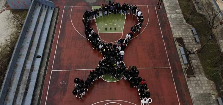 Μια μαύρη κορδέλα σχημάτισαν με τα σώματά τους οι μαθητές του ΕΠΑΛ Καλαμπάκας ως μια συμβολική κίνηση δήλωσης πένθους για τους συνανθρώπους μας που έχασαν τραγικά τη ζωή τους στη μοιραία σύγκρουση τρένων στα Τέμπη και συμπαράστασης προς τις οικογένειες και τους οικείους τους.