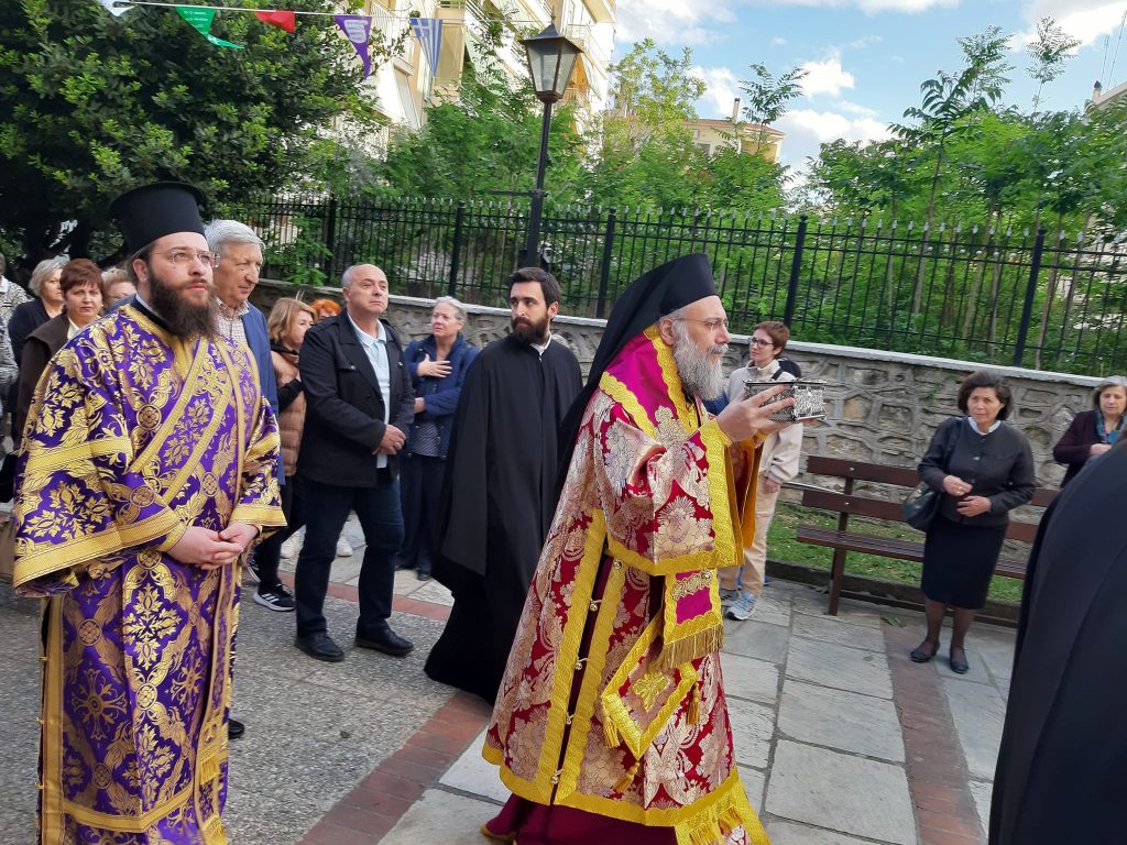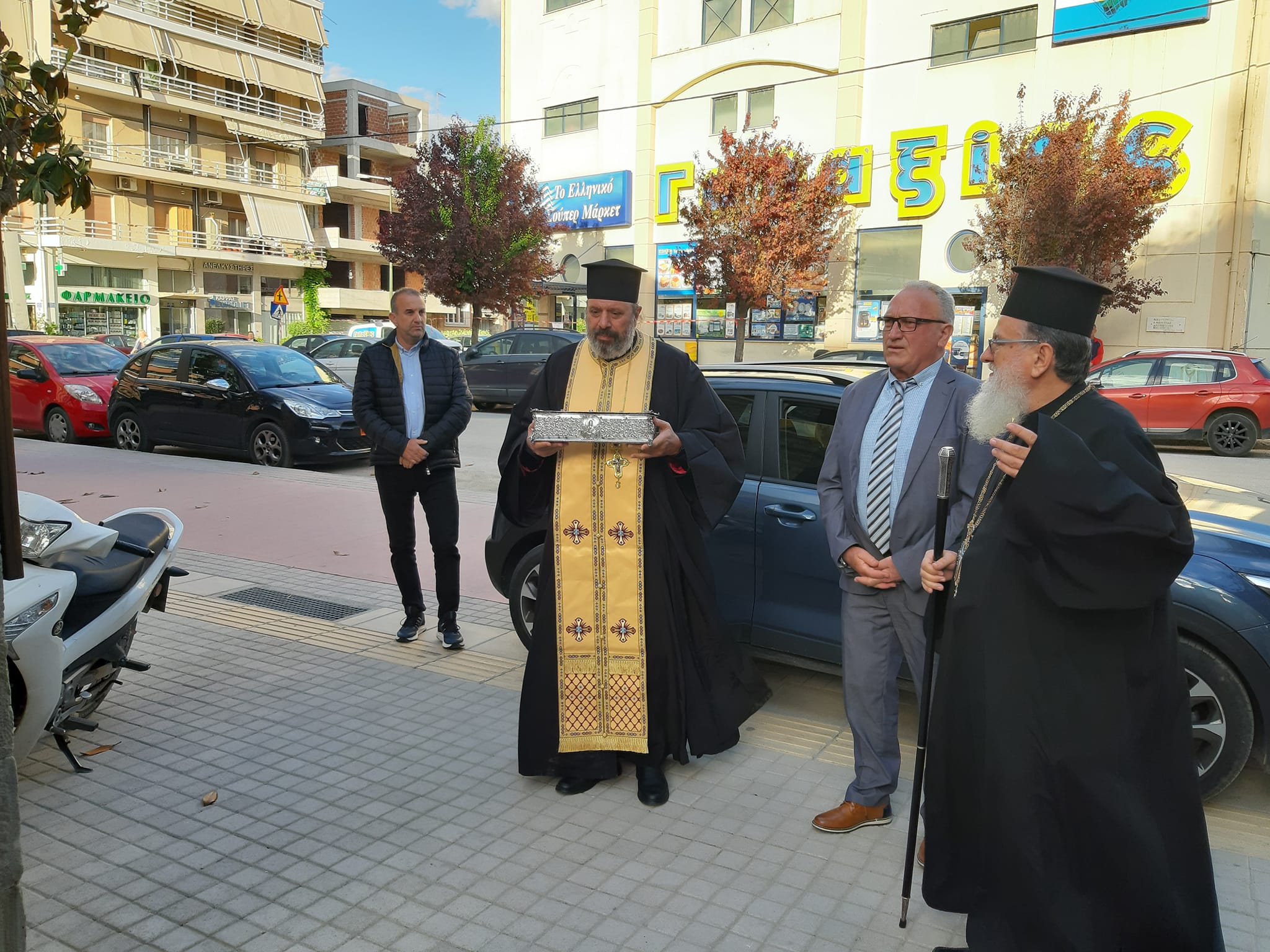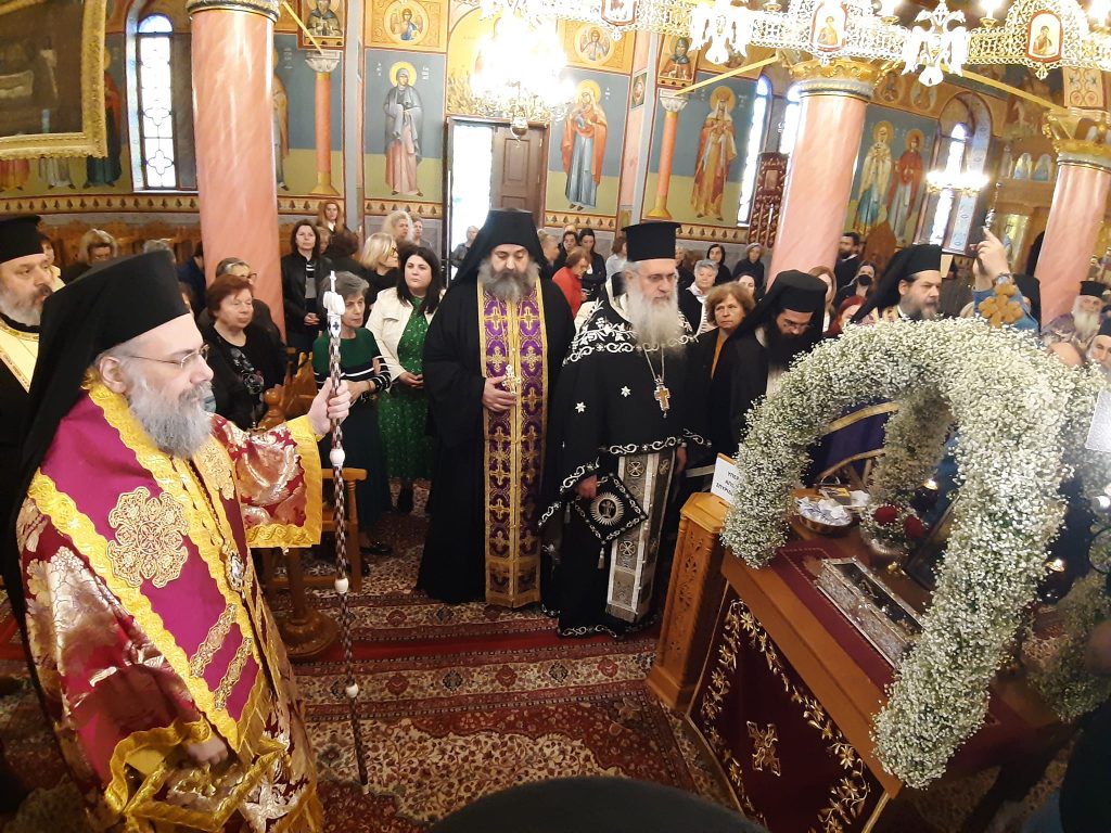 Προ των πυλών τα ανέμεναν σύσσωμοι οι κάτοικοι της πόλεως, με επικεφαλής κλήρου και λαού τον Μητροπολίτη Τρίκκης Χρυσόστομο. Όπως κατέγραψε το trikalavoice.gr εν συνεχεία τέθηκε Αυτή σε προσκύνηση και τελέστηκε δέηση επί τη αφίξει της Τιμίας Χειρός και εν συνεχεία Θ΄ Ώρα και Προηγιασμένη Αρχιερατική Θεία Λειτουργία ιερουργούντος του Σεβασμιωτάτου.