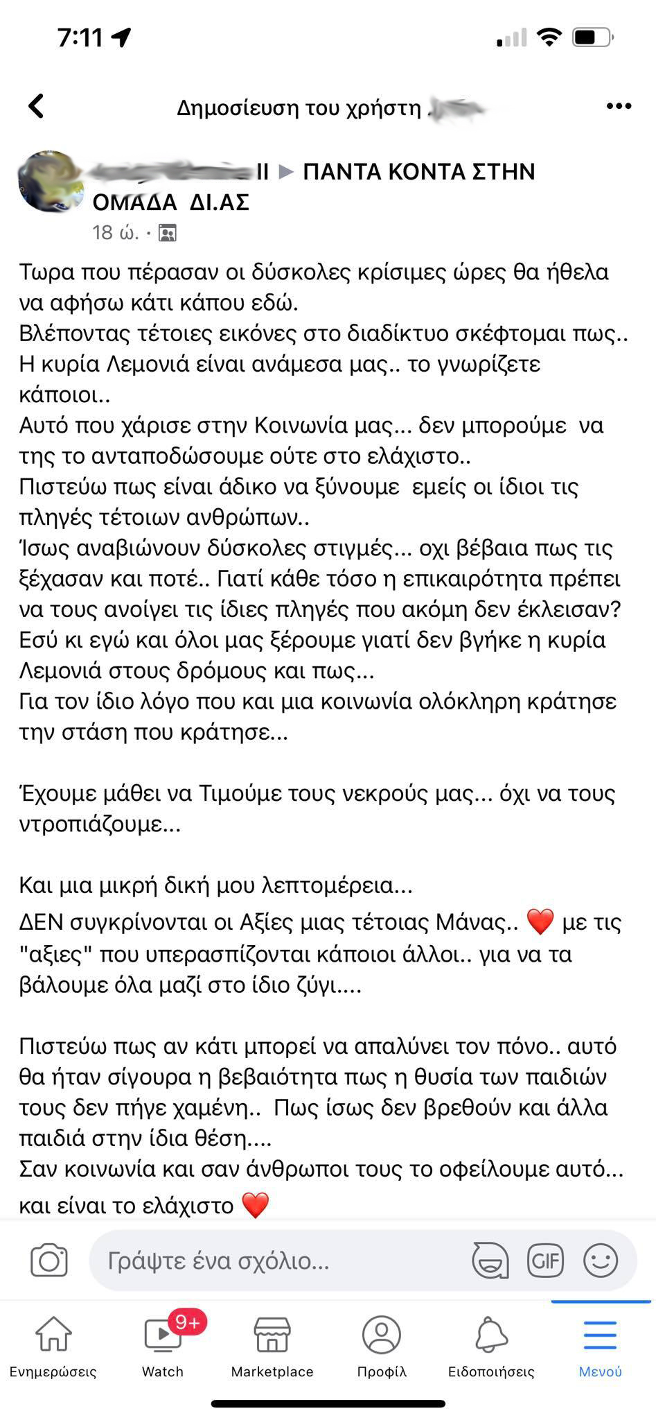 Με αφορμή την απελευθέρωση των 7 αστυνομικών που κρατούνταν για την αιματηρή καταδίωξη στο Πέραμα όπου έπεσε νεκρός από πυρά 20χρονος, σε ομάδα αστυνομικών στο facebook αναρτήθηκε μήνυμα προς την μάνα, την κα Λεμονιά, του αδικοχαμένου Τρικαλινού αστυνομικού Γιώργου Σκυλογιάννη που σκοτώθηκε σε συμπλοκή στου Ρέντη πριν 10 χρόνια.