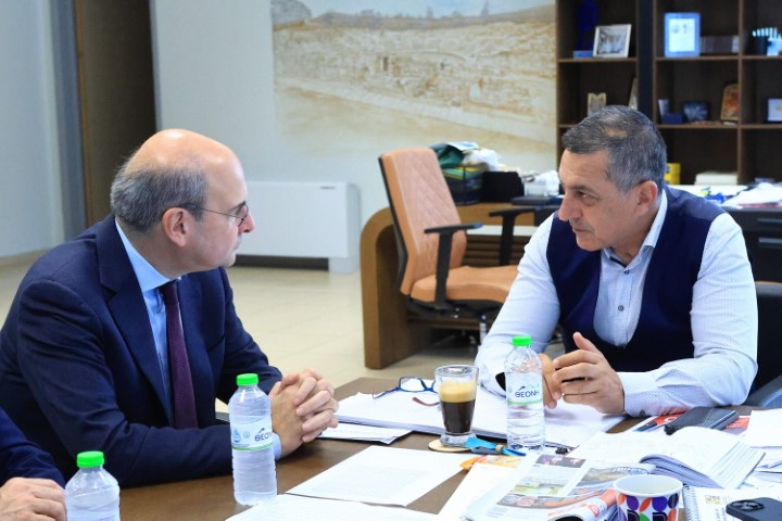 Ο Περιφερειάρχης Θεσσαλίας κ. Δημήτρης Κουρέτας υποδέχτηκε σήμερα στην Περιφέρεια τον Υπουργό Εθνικής Οικονομίας και Οικονομικών κ. Κωστή Χατζηδάκη. Στη συνάντηση η οποία διήρκησε σχεδόν δύο ώρες, ο Περιφερειάρχης ενημέρωσε αναλυτικά τον Υπουργό για την κατάσταση στην οποία βρίσκονται οι περιοχές που πλημμύρισαν από τον ‘Daniel, για τα έργα τα οποία έγιναν μέχρι τώρα από την Περιφέρεια αλλά και για τον προγραμματισμό των έργων από κοινού με την κυβέρνηση για την αντιπλημμυρική θωράκιση της Περιφέρειας.