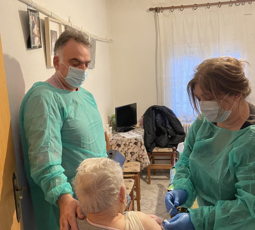 Εμβολιασμό κατ’ οίκον μετά από συνεργασία με την 5 ΥΠΕ, πραγματοποίησε σήμερα 29/11/2021 το εμβολιαστικό κέντρο Πύλης , ο Υπεύθυνος του εμβολιαστικού κέντρου Γενικός / Οικογενειακός Ιατρός Ιωάννηs Κουτσονάσιοs , η Νοσηλεύτρια του ΚΥΠ Ελευθερία Σιδοπούλου και η Νοσηλεύτρια του Προγράμματος Βοήθεια στο Σπίτι του Δήμου Πύλης Σωτηρία Τσέλιου.
