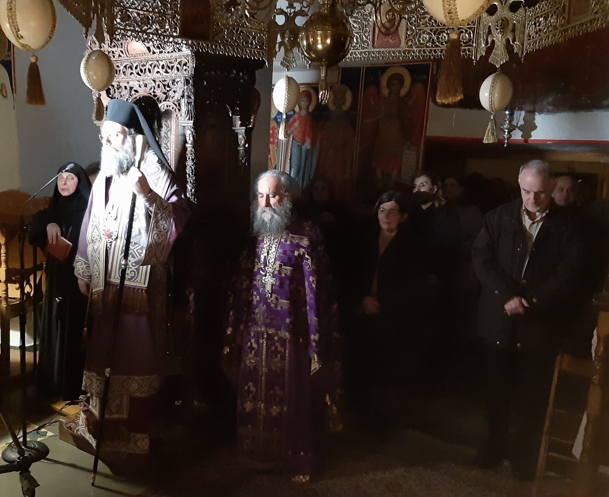 Όπως κατέγραψε το trikalavoice.gr το βράδυ της Τρίτης, παραμονή της εορτής, τελέστηκε Αρχιερατική Προηγιασμένη Θεία Λειτουργία των Τιμίων Δώρων, ιερουργούντος του Μητροπολίτου Τρίκκης, Γαρδικίου και Πύλης Χρυσοστόμου, συνιερουργούντος δε του πνευματικού πατρός της αδελφότητας, Ηγουμένου της Μονής Δουσίκου, γέροντος Βησσαρίωνος.