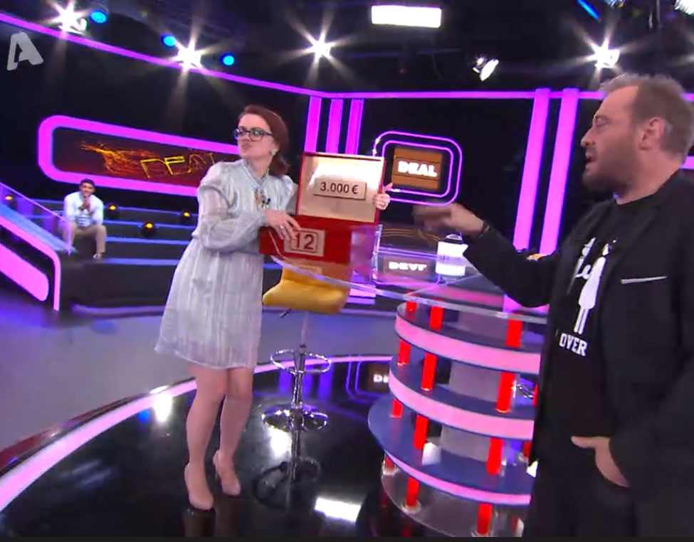 Συμμετείχε στο τηλεπαιχνίδι τοu ALPHA, διαπραγματεύτηκε με επιτυχία με τον τραπεζίτη, έφτασε στο τέλος παίρνοντας 3.000 € και τα… διπλασίασε αμέσως μετά συνεχίζοντας και με το έξτρα κουτί!… Έφυγε με 6.000 €