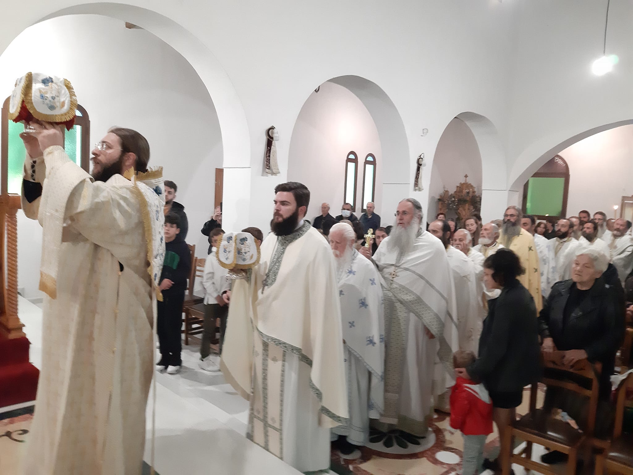 Χθες το απόγευμα τελέστηκε στον περικαλλή νέο Ναό που ανεγέρθηκε στη χάρη του στη φερώνυμη συνοικία της πόλης, πανηγυρικός Αρχιερατικός Εσπερινός χοροστατούντος του Μητροπολίτου Τρίκκης, Γαρδικίου και Πύλης Χρυσοστόμου, συμμετοχή κληρικών της Μητροπόλεώς μας. Ο κ. Χρυσόστομος ιερούργησε το πρωί της Τετάρτης, κατά την κυριώνυμο ημέρα της εορτής και μίλησε καταλλήλως στους πιστούς.