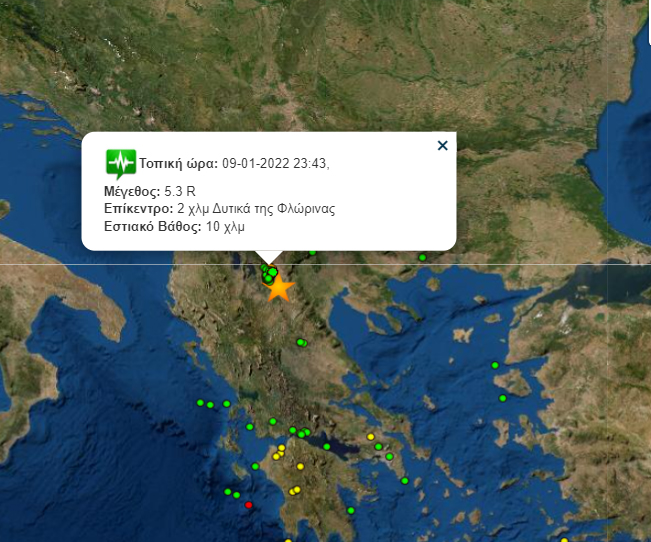 Με τα μάτια στραμμένα στη Φλώρινα είναι οι σεισμολόγοι, ενώ οι κάτοικοι προσπαθούν να ηρεμήσουν από τον ισχυρό σεισμό 5,3 Ρίχτερ που έγινε 6 χιλιόμετρα βόρεια βορειοδυτικά της πόλης και σε εστιακό βάθος μόλις 10 χιλιομέτρων.