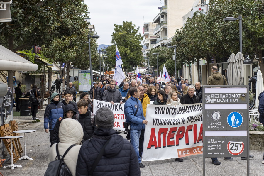 Δεύτερη μεγάλη απεργιακή συγκέντρωση, με συμμετοχή φορέων, συνδικάτων και μαθητών στα Τρίκαλα το μεσημέρι της Πέμπτης.
