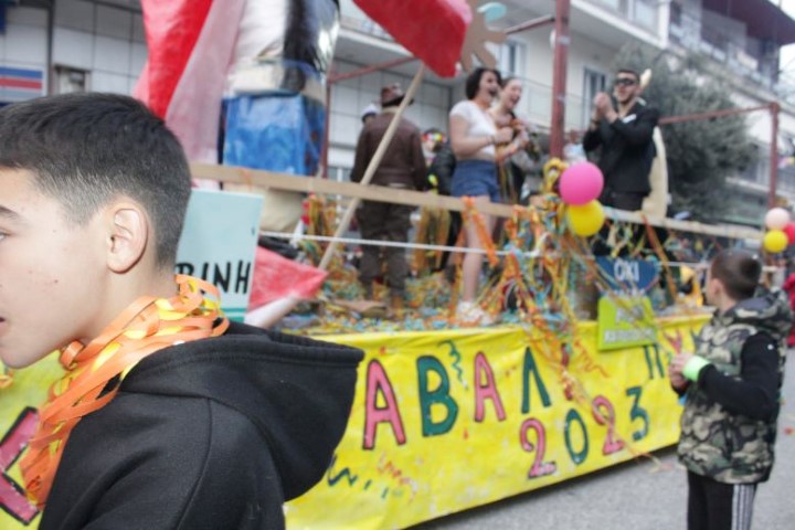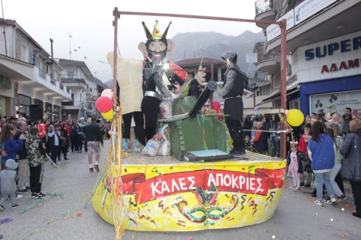 Πομπή Των Αρμάτων ξεκίνησε από το ΕΠΑΛ μέσα από τον ήχο των μεγαφώνων που έπαιζαν Αποκριάτικα χαρούμενα λάτιν τραγούδια, δημιουργώντας μία φανταστική Αποκριάτικη ατμόσφαιρα με τις σερπαντίνες και τα κομφετί να καλύπτουν την ατμόσφαιρα, προκαλώντας τον ενθουσιασμό του κόσμο, ο οποίος χειροκροτούσε και τραγουδούσε ακατάπαυστα.
